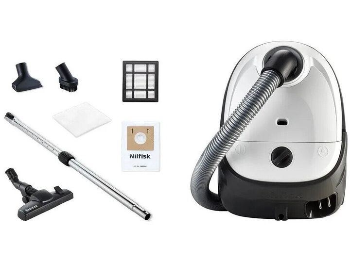 Inkludert: EPA10-filter, kombinasjonsdyse, rundbørstedyse, møbelmunnstykke, 1 støvpose