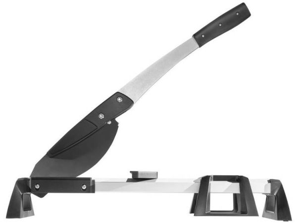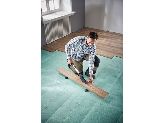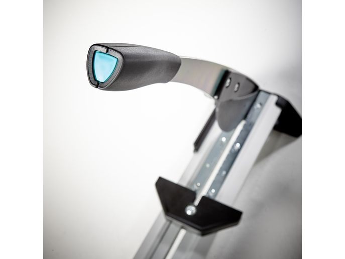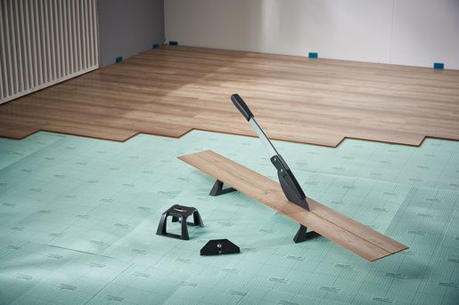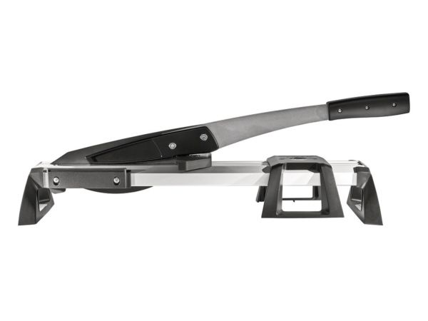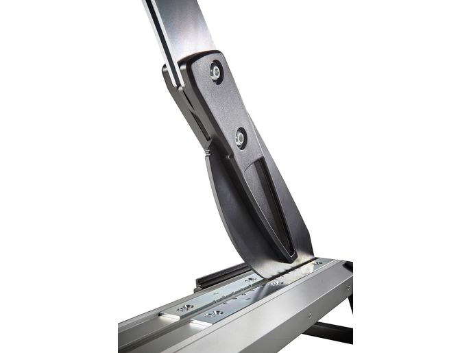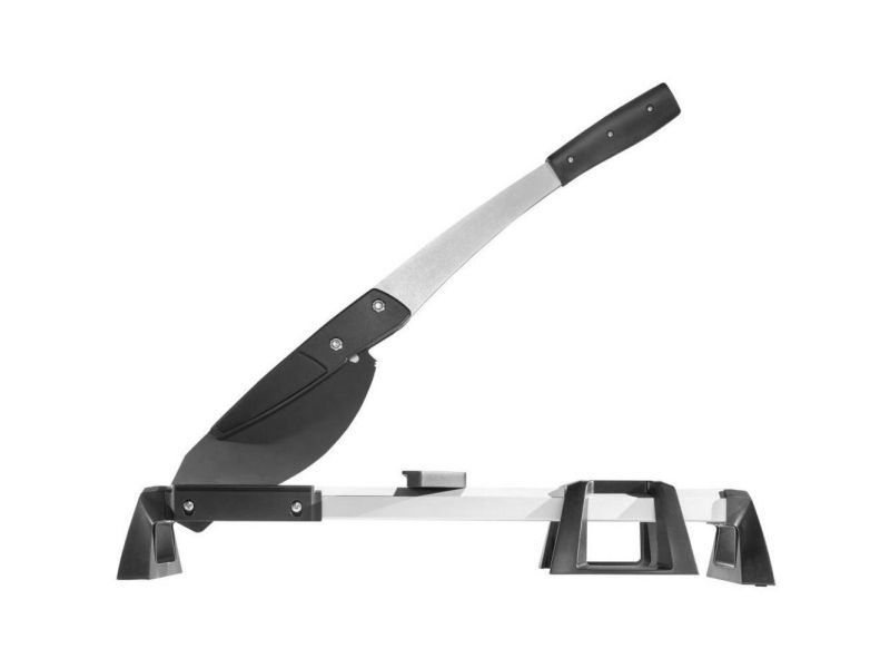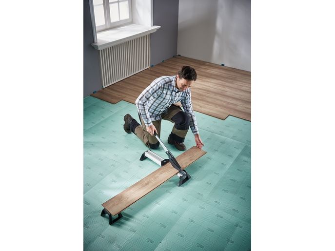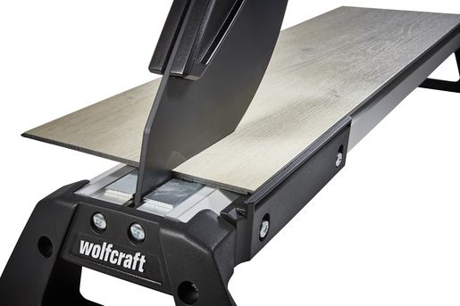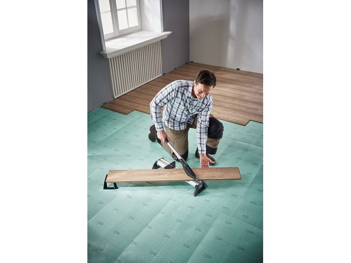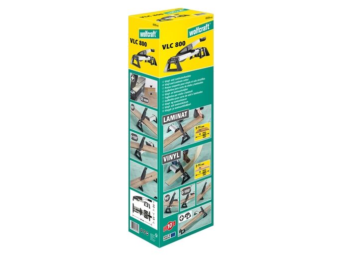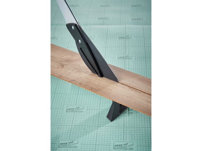 The VLC 800 vinyl and laminate cutter is a versatile and powerful tool for all tradespeople and DIYers who frequently undertake extensive laminate and vinyl laying jobs. This all-rounder not only cuts all standard laminate boards up to 11 mm thick and 465 mm wide, but also the extremely popular floor boards made from exceptionally durable vinyl. It is suitable for all commercially available vinyl boards from 2 to maximum 11 mm thick. The VLC 800 easily cuts through boards made from 100% vinyl or those with a HDF base layer with footfall sound insulation. Simply narrow the cutting gap using the adjustable cutting bars to cut thin vinyl material of approx. 2 – 5 mm. Even self-adhesive vinyl can be processed with ease thanks to the specially coated blade. With minimal noise and dust and no need for power. The high-quality, laser-cut, smooth blade not only makes cutting laminate safer, but also guarantees you a precise, clean cutting edge. This is primarily due to the blade geometry that sets the angle between the blade and cutting gap to the most efficient ratio. The VLC 800 also features a holding down clamp on the cutting lever that presses the board securely against the integrated serrated cutter bars and prevents the board slipping or jamming on the blade. This is very helpful, especially with free angular cuts from 0° to 180° without a stop or with continuous longitudinal cuts. On the side of the aluminium profile, there is a stop for cutting strips of vinyl to a width of 55 mm for insertion into special skirting boards. This provides a quick way of producing baseboards to match the floor covering.