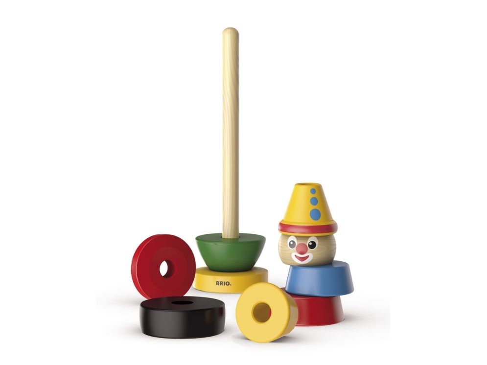 BRIOs klassiske stableleke i tre fra 1958, trener opp barnets øyne- og håndkoordinasjon. Høyde 23 cm. Fra 19 mndr.