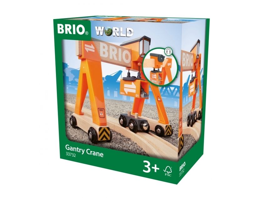 Lifting, hauling and loading have never been more exciting! The Gantry Crane has a cabin on top that slides across the bar to position the crane over the magnetic load, hauls it up and winds it down again by the turn of a crank. The Gantry Crane has wheels and can be moved into any railway scene. All wood included is FSC-certified.