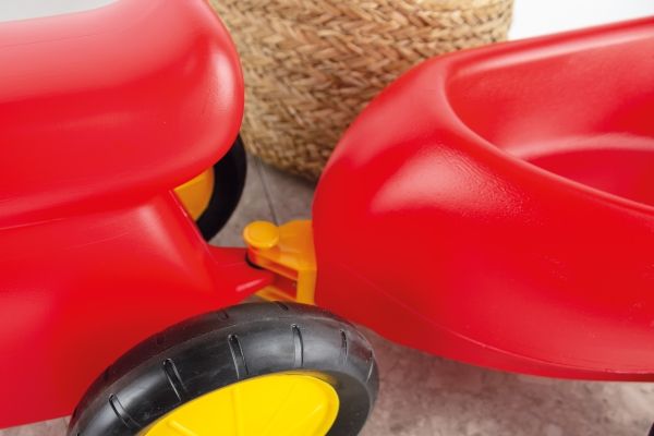 Dantoys robuste anhænger med gummihjul er det perfekte tilbehør til børns udendørs eventyr. Med sine holdbare gummihjul sikrer anhængeren en stabil og behagelig kørsel på forskellige underlag, hvad enten det er på terrassen, i haven eller på legepladsen. Anhængeren er fremstillet i Danmark under Dantoys Classic-serie, hvor kvalitet og holdbarhed går hånd i hånd med miljøbevidsthed. Den er Svanemærket, hvilket garanterer, at produktet lever op til strenge miljø- og sundhedskrav gennem hele dets livscyklus. Den robuste konstruktion er specielt udviklet til at modstå børns aktive leg og kan bruges år efter år. Dette legetøj er særligt velegnet til børn fra 2 år og opefter, hvor det understøtter flere vigtige udviklingsområder. Når børn leger med anhængeren, træner de deres motoriske færdigheder, både de fine bevægelser ved at koble anhængeren til og fra, og de grove motoriske færdigheder når de trækker eller skubber den rundt. Samtidig styrkes deres balance og kropskontrol gennem den fysiske aktivitet. Vedligeholdelse af anhængeren er enkel og ligetil. Den kan nemt rengøres med en fugtig klud og mild sæbe ved håndvask, hvilket hjælper med at bevare dens kvalitet og udseende. Efter brug anbefales det at opbevare anhængeren indendørs eller under tag for at forlænge dens levetid. Anhængeren er ikke bare et stykke legetøj, men en invitation til timevis af kreativ leg. Børn kan bruge den til at transportere deres yndlingslegetøj, samle blade i haven eller som en vigtig del af deres rolle- og fantasilege. Den stimulerer både fysisk aktivitet og social interaktion, når børn leger sammen og deler køretøjet mellem sig. Sikkerhedsinstruktioner