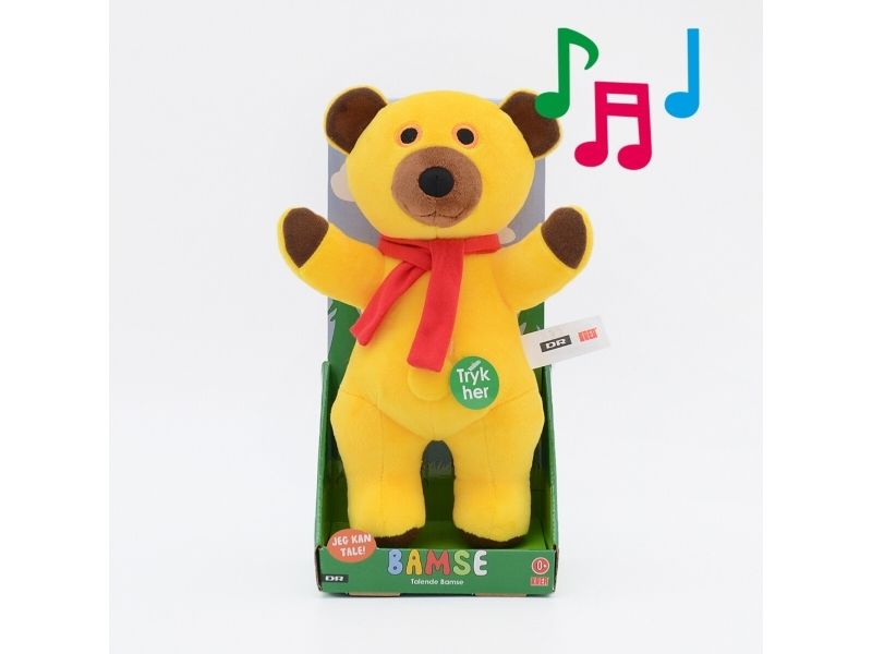 Tryk Bamse på maven og han siger mange forskellige sjove ting. Bamses højde 25 cm. Inkl. batterier, kan ikke udskiftes.