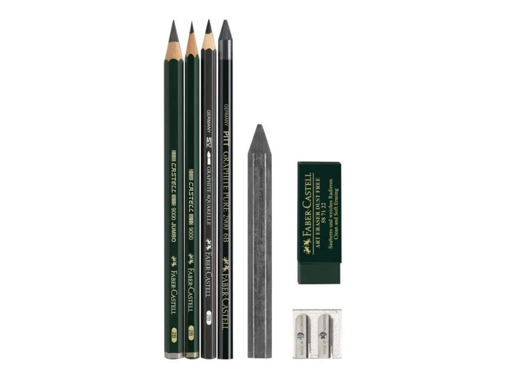 Faber-Castell Pitt Graphite set - Sett med fettstift og blyant - grafitt - 2B, 6B - 5 deler
