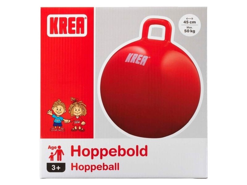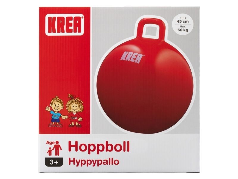 KREA Hoppebold i rød. Der er ikke noget sjovere end at hoppe rundt på en hoppebold. Det er sjovt, det træner muskllerne og motorikken, det styrker balancenm det gi'r god motion, glade smil og røde kinder. Pumpe medfølger. Diameter 45 cm. Fra 3 år.