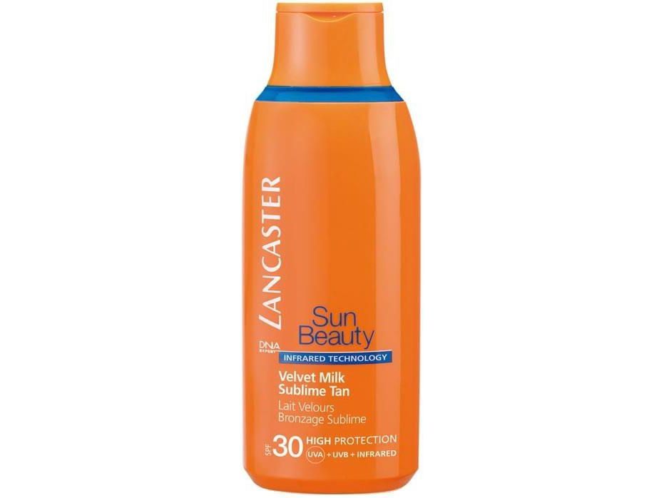 Doesn't your skin deserve the broadest, high-quality sun protection? Lancaster's Sun Beauty Velvet Milk SPF30 for body brings you broad spectrum protection as it helps you develop a lasting, golden tan. The unique formula combines our exclusive Full Light Technology, which targets 100% of the sun's rays, and our reinforced Tan Activator Complex. Enjoy that golden tan!
