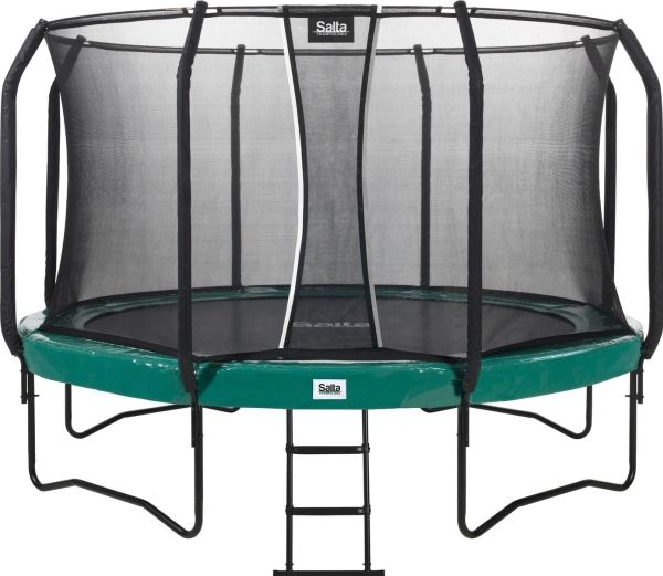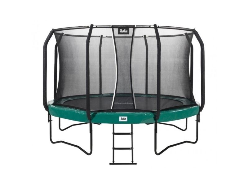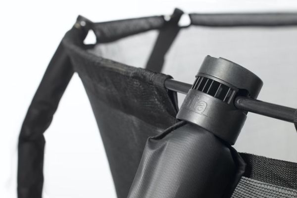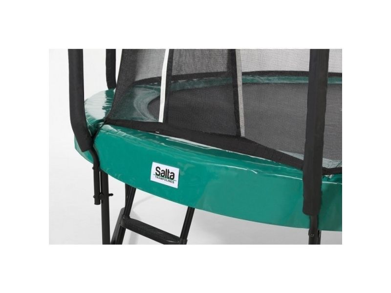 Oplev den bedste og højeste kvalitet indenfor trampoliner med Salta – First Class. Til denne uovertrufne trampolin anvendes kun de bedste, stærkeste og sikreste materialer. Trampolinerne i First Class er alle udstyret med en stige og en ekstra tyk ramme og kantmåtten har et luksuriøst udseende pga. det tykke materiale (0,76mm). Toprammen er konstrueret med en firkantet fiksering til bundrammen ved hjælp af faste skruetilslutninger. Dette resulterer i en stabil og fast forbindelse. Mens du hopper kan rammen derfor ikke bevæge sig, og er derfor usædvanlig stille! Montering af First Class gøres let og komfortabelt uden at der er gået på kompromis med sikkerheden som er helt i top. First Class dobbelt koniske fjeder på hele 210 mm, giver dig også komfort og mere fornøjelse ved at hoppe højere og lande blødere.