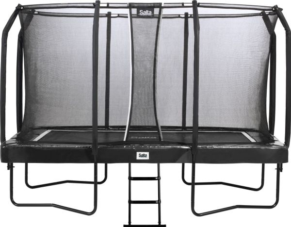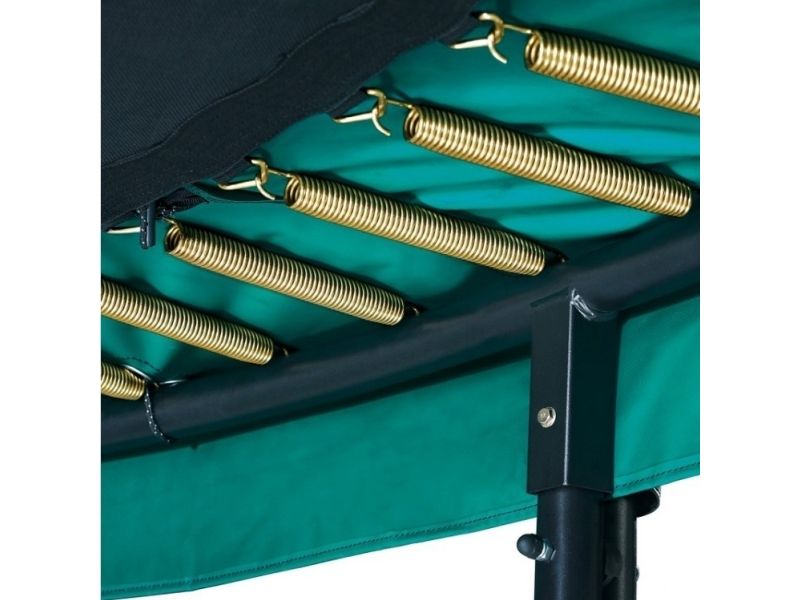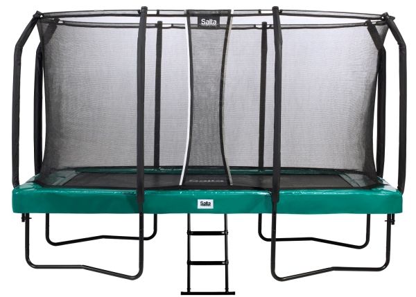 Specifikationer: Størrelse: 427x244 cm Springareal:351x168 cm Trampolin højde: 89 cm Højde inkl. sikkerhedsnet: 271 cm Anbefalet max brugervægt: 180 kg Vægt klaret i test: 450 kg Certificering, test: TÜV, CE, EN 71-14 Ramme, ben & samlingsrør: Ø 56 mm rustfri galvaniseret rør, tykkelse 2,0 mm (ramme) 1,5 mm (ben) Antal ben: 4 stk. – sort farve Fjeder dobbelt galvaniseret stål: L: 210 mm,- Dia. 25 mm - 92 fjedre i alt guldgalvaniseret Kantmåtte: Tykkelse 30 mm EPE skum, bredde 38 cm PVC 0,76 mm farve sort Springmåtte og sikkerhedsnet materiale: Polypropyleen – inkl. lynlås i sikkerhedsnet Garanti: Ramme 5 år, kantmåtte 3 år, sikkerhedsnet, springmåtte & fjeder 2 år Skruer: Galvaniseret stål Tilbehør (ikke inkluderet): stormankre 805-558 Video - samlevejledning: https://www.youtube.com/watch?v=qgPH1P0Q3XM&feature=youtu.be