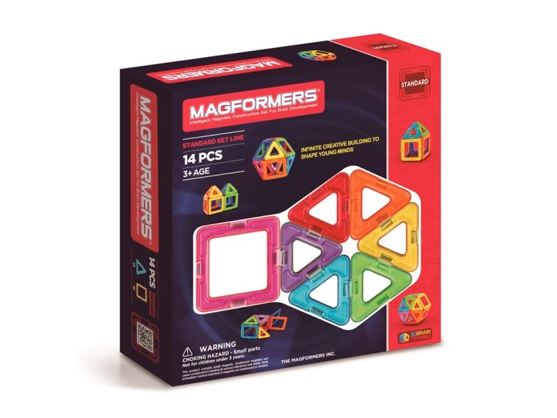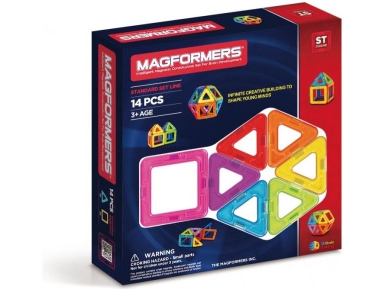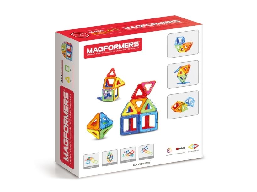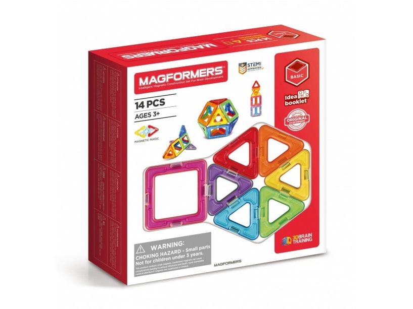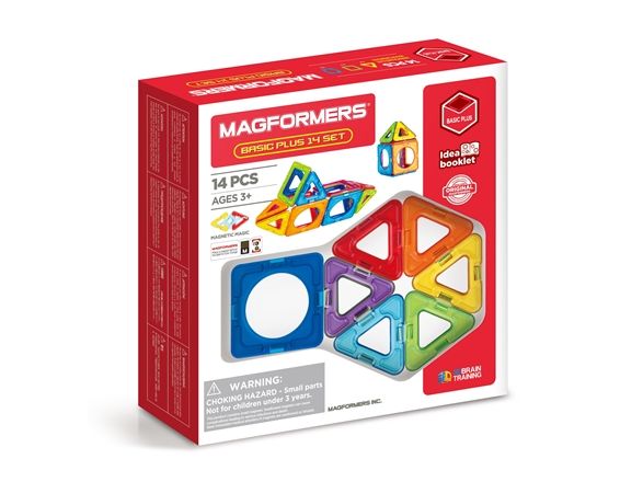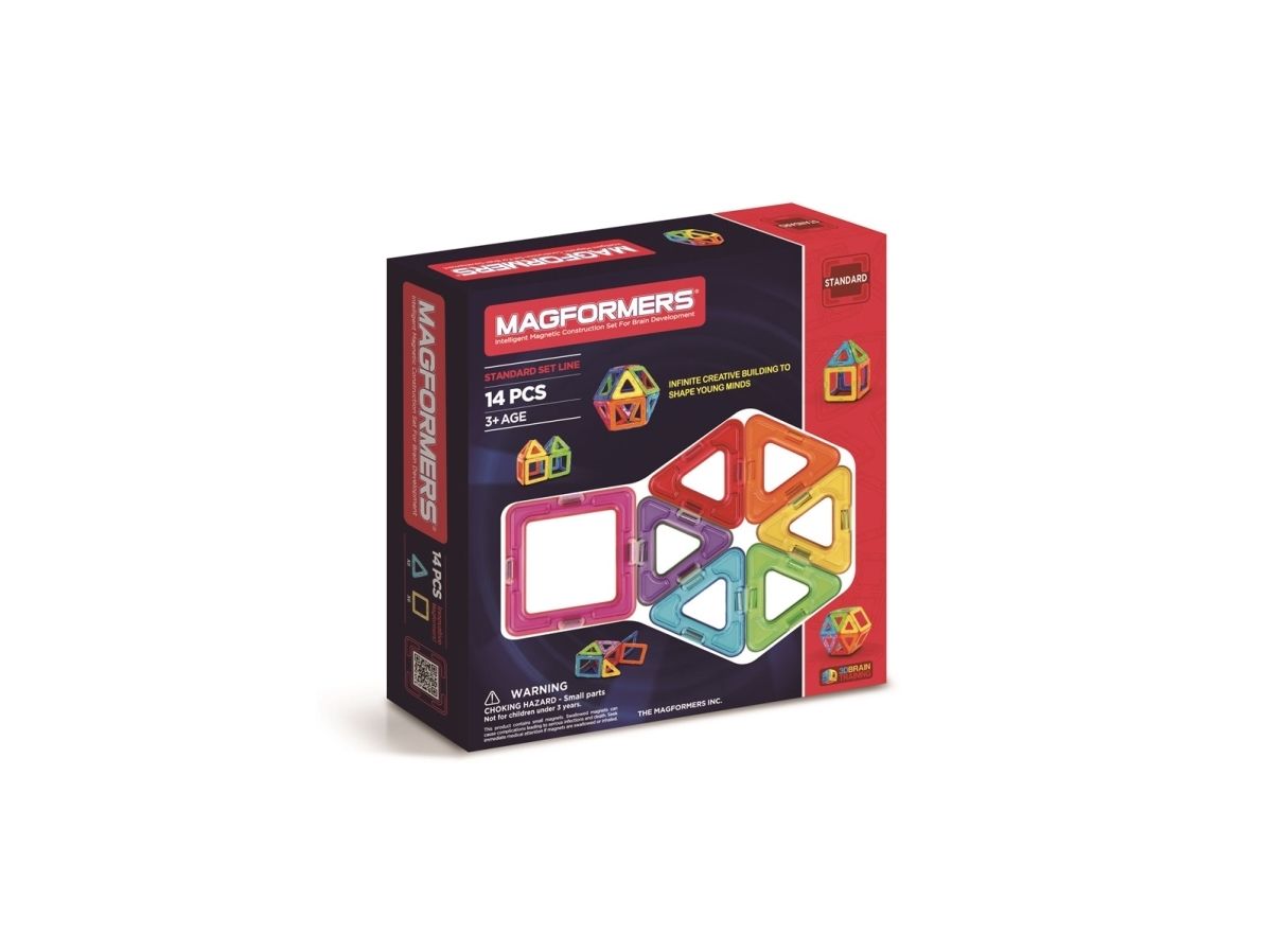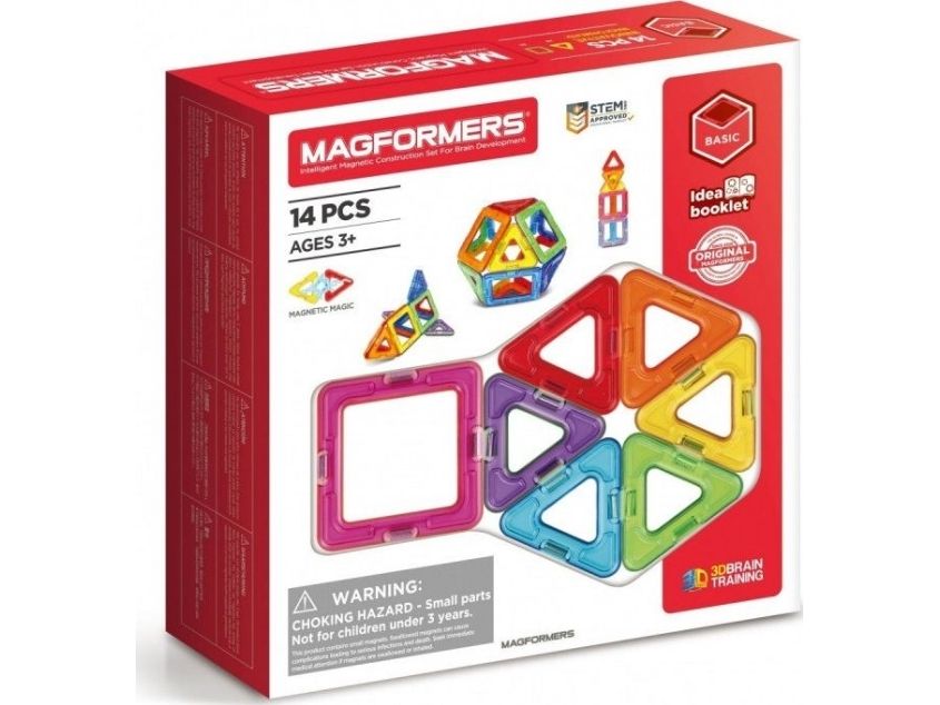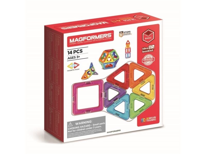 Magformers 14. Basic sett som består av 8 trekanter og 6 firkanter. Bygg f.eks. en ball eller et hus i de fargerike Magformers magnetbrikkene. Kompatibelt med alle øvrige Magformers sett.