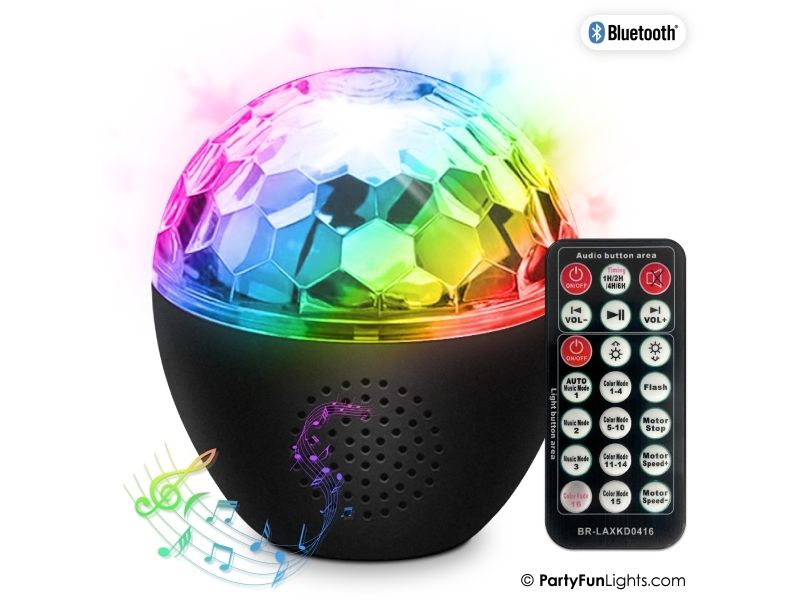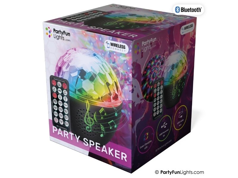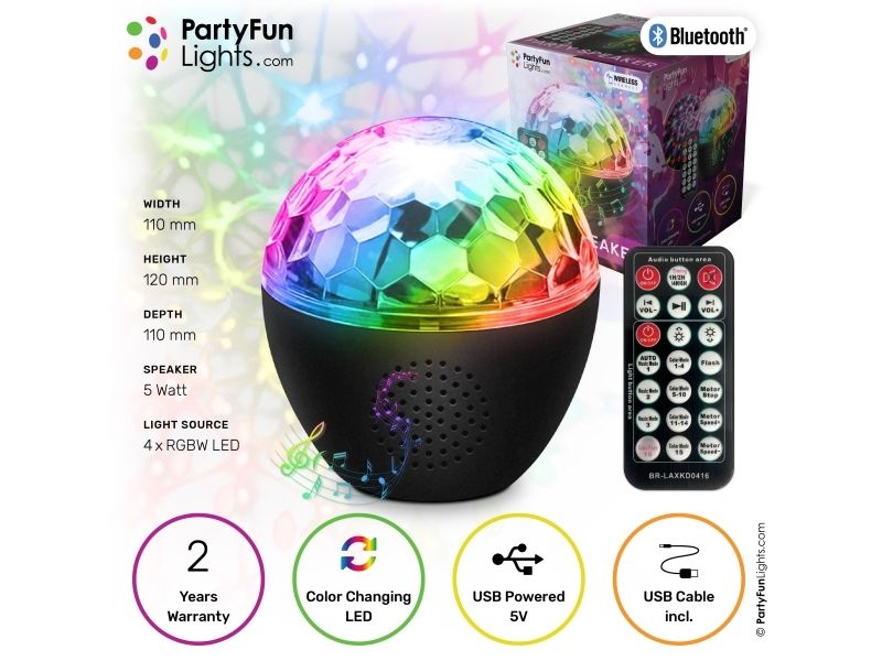 Skru op for stemningen med denne farvestrålende Bluetooth Party Speaker! Med sit roterende lysshow og indbyggede højttaler er er den det perfekte midtpunkt til enhver fest – både for børn og voksne.