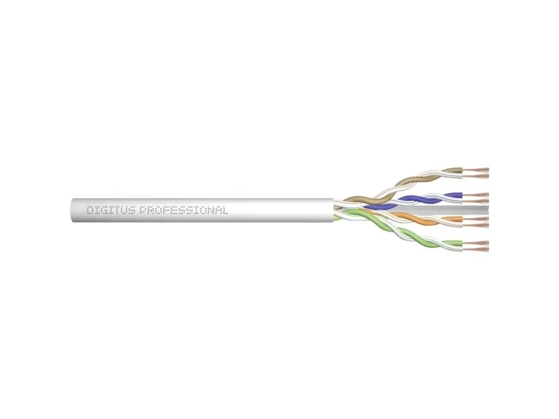 DIGITUS Category 6 U-UTP installation cables are manufactured and tested to the ISO/IEC 11801, DIN EN 50173 and DIN EN 50288-5-1 Category 6 specifications. Every cord consists of 8 color coded AWG 23 polyethylene insulated conductors. The conductors are twisted together to form 4 pairs with varying lay lengths. Printing details along the outer sheath includes the brand name, item code and cable length 0-305 meter.