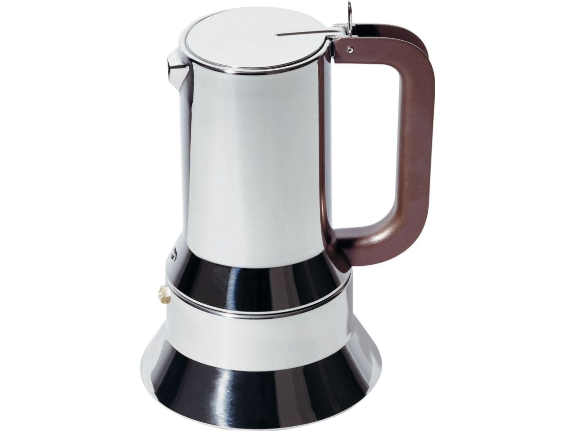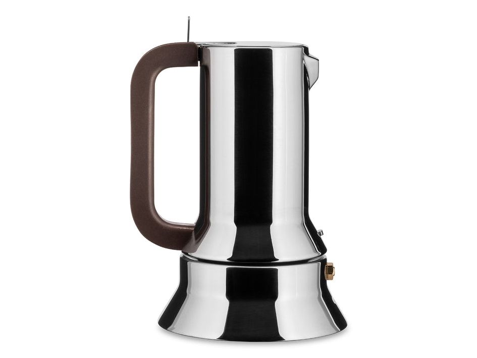 Three-cup espresso coffee maker, in 18/10 stainless steel with cast iron handle. The 9090 isn't just the first espresso coffee maker in Alessi's history: it was also Alessi's first object for the kitchen after the 1930s, the first of Alessi's many Compasso d'Oro awards (1979), Alessi's first object to be inducted into the Permanent Design Collection at the New York MOMA, and of course it's the best-loved Alessi coffee maker bar none, as well as Alessi's first "amphibious object", i.e. it is for kitchen use, but with its high design quality it can also be brought directly to the table.