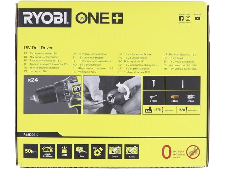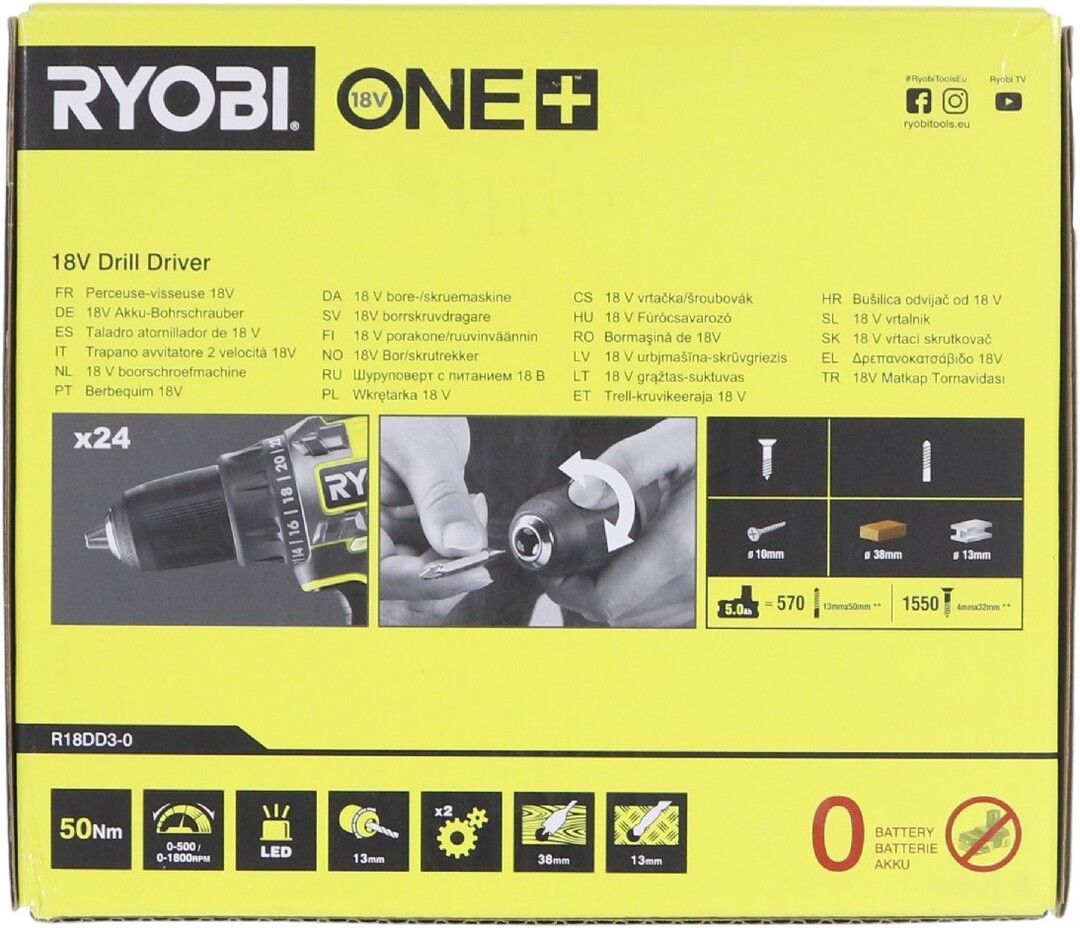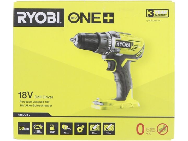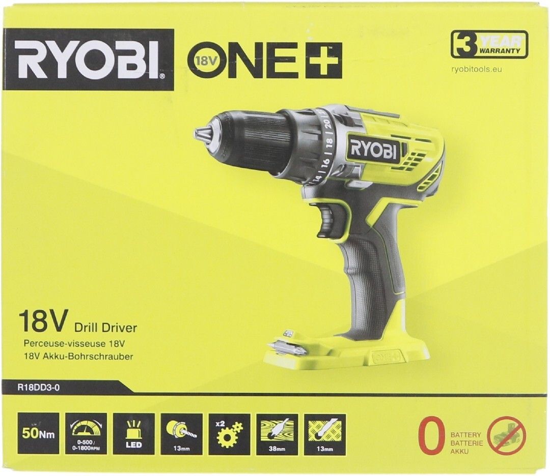 Ryobi One+ R18DD3-0 - Drill/driver - trådløs - 2 hastigheter - nøkkelfri borhylse 13 mm - 50 N·m - uten batteri - 18 V