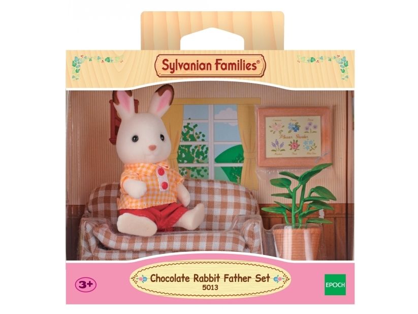 Sett med pappa Sjokoladekanin fra Sylvanian Families inneholder fine dukker og tilbehør for barn. Med din første figur og noen møbler er dette en perfekt inntreden til Sylvanian Families-verdenen. Dette hjemmekoselige settet inneholder alt du trenger for å hjelpe pappa Sjokoladekanin føle seg vel, inkludert hans rutete favorittsofa, en frodig grønnplante og et vakkert maleri av blomster som kommer fra Sylvanian Village hengende på veggen. Dette settet inneholder også Vegard Sjokoladekanin kledd i en avslappet, gulrutete skjorte og rød joggebukse.