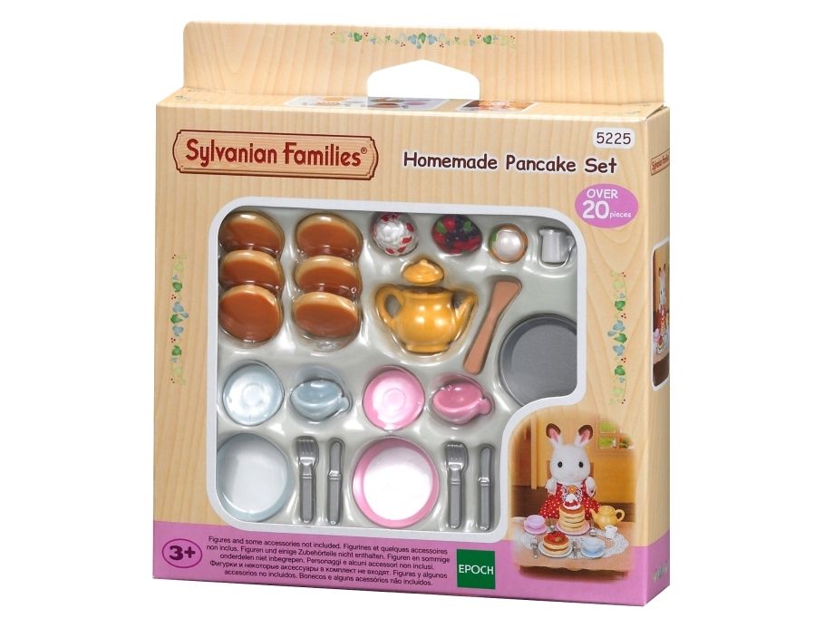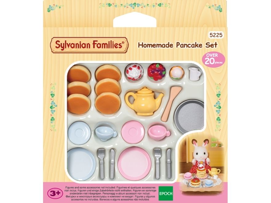 Hva er bedre enn pannekaker? Dette smakfulle settet er perfekt for å lage frokost til hele familien! Med seks pannekaker og tre typer deilig fyll, har dette alt dine små venner i Sylvanian Village trenger for å lage og spise dette smakfulle frokostsnadderet. Det følger selvfølgelig også med redskaper, bestikk og en tekanne - du kan ikke spise pannekaker uten te!