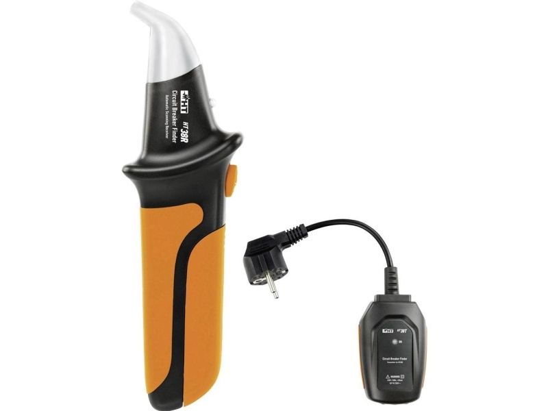 Sikringsfinder HT38 HT38 er en nyudviklet professionel sikringsfinder, der hjælper dig med at finde og tildele sikringer til strømførende kredsløb takket være dens nemme håndtering. Sikringsfinderen HT38 består af en sender med integreret beskyttelseskontaktstik og en modtager med batteriforsyning. Den optiske og akustiske visning i modtageren gør det meget lettere at lokalisere strømkredse i fordelere og forgreningsdåser. HT38 opfylder IEC/EN 61010-1 samt kategorien CAT til 250V. Har LED-display og summer med en variabel lydTildeling af sikringerTildeling og sporing af en ledningAnvendelse i spændingsførende kredse med spændinger på op til 250 VAC mod jordLED-display ved lav batteriladetilstandSlukker automatisk