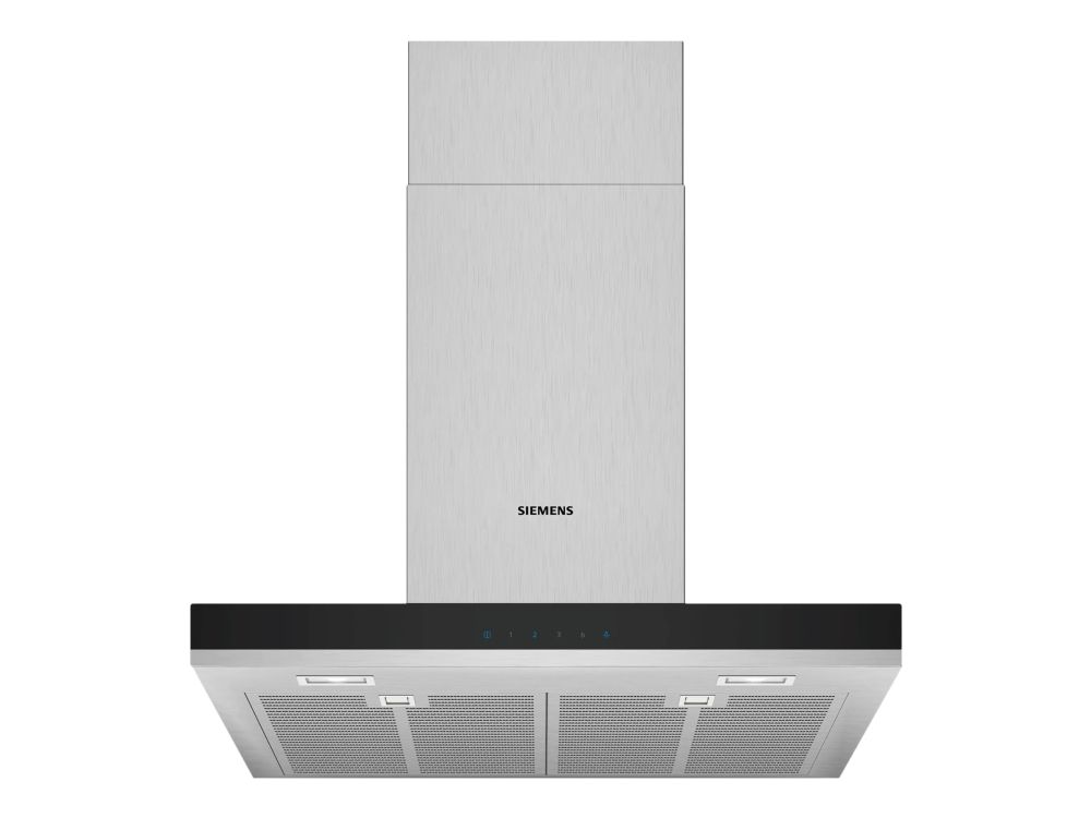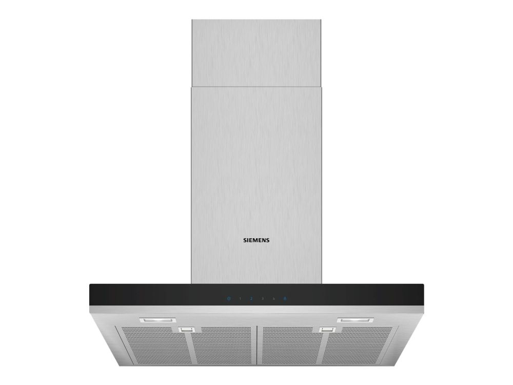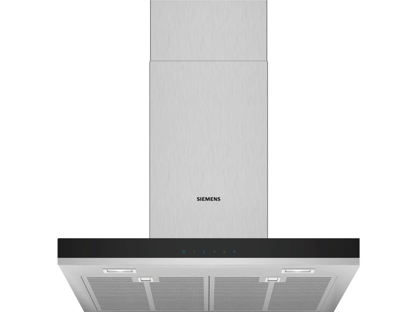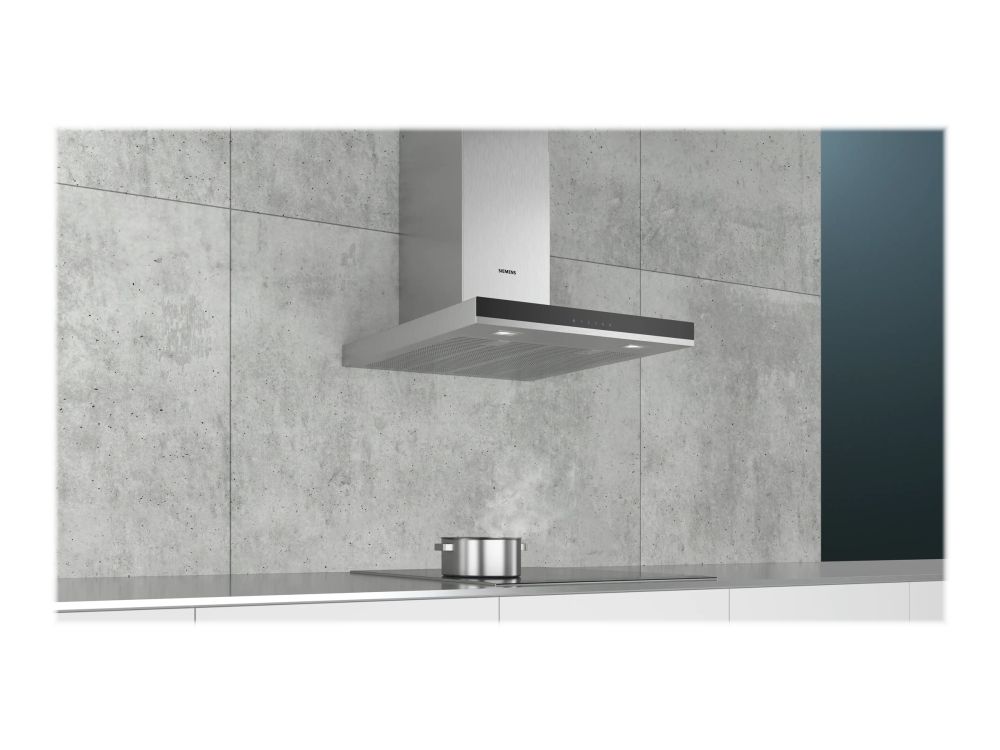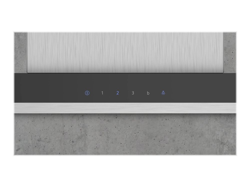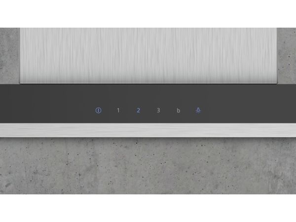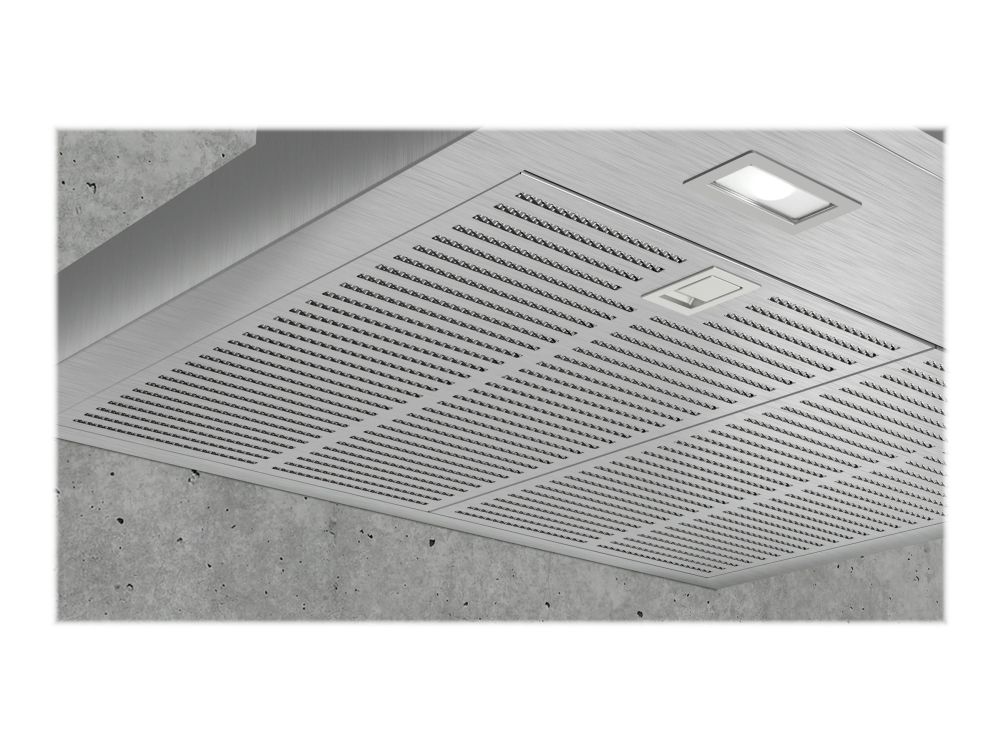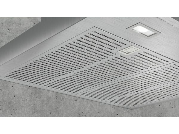 Box design extractor hood with high extraction rate. The intensive setting temporarily increases the extraction rate when kitchen vapor is especially intense, with automatic revert after 6 minutes.