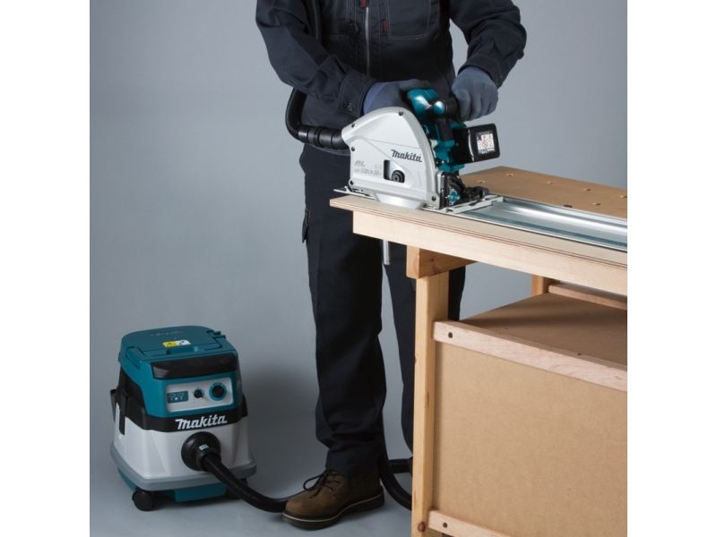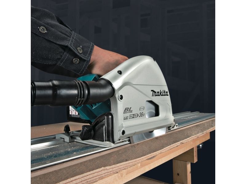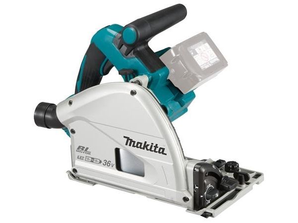 Model DSP600 is a 165mm cordless plunge cut saw powered by two 18V Li-ion batteries in series, and features high power comparable to the corded equivalent.