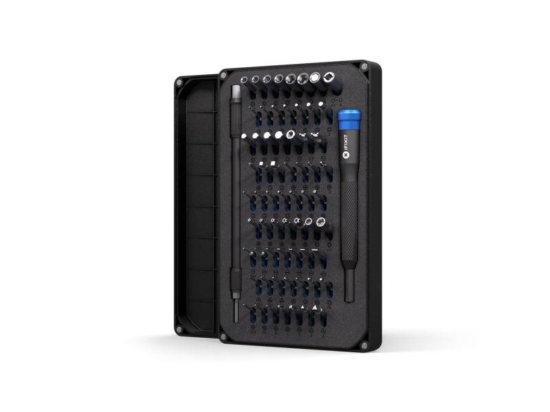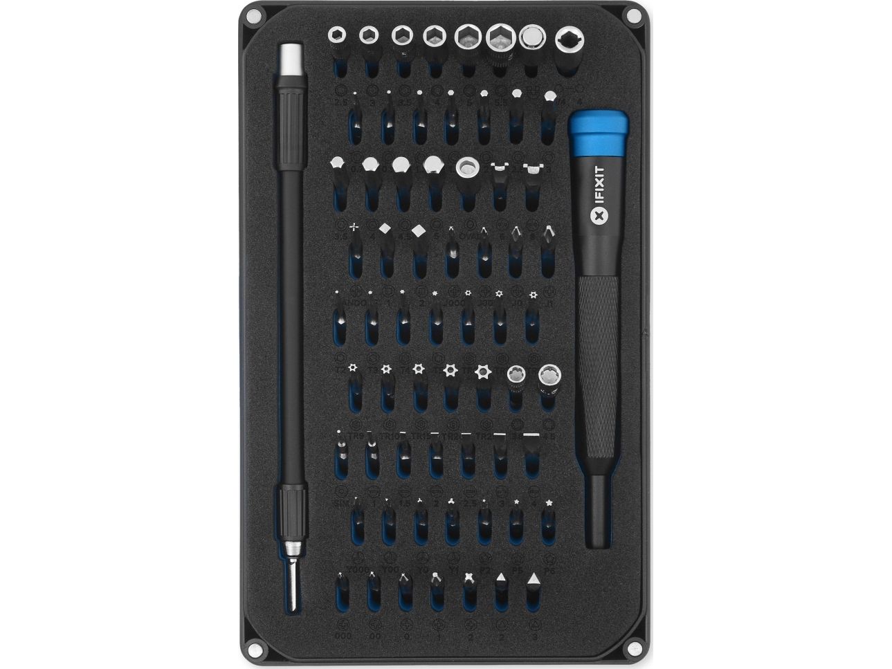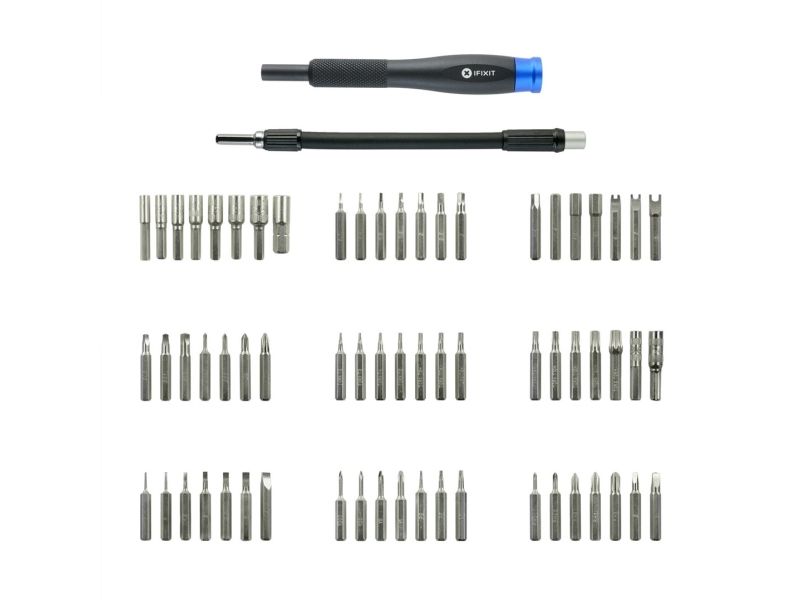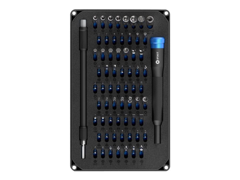 - 64 purpose-driven screwdriver bits selected based on the data from thousands of repair guides.