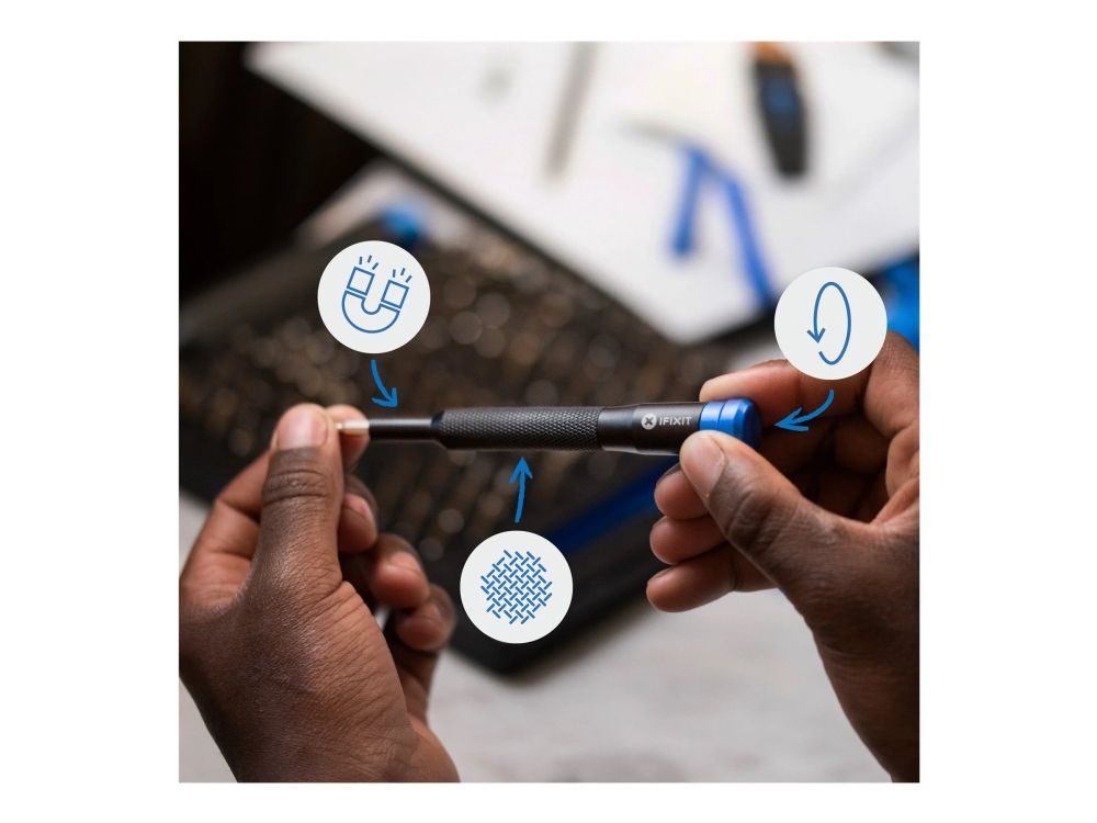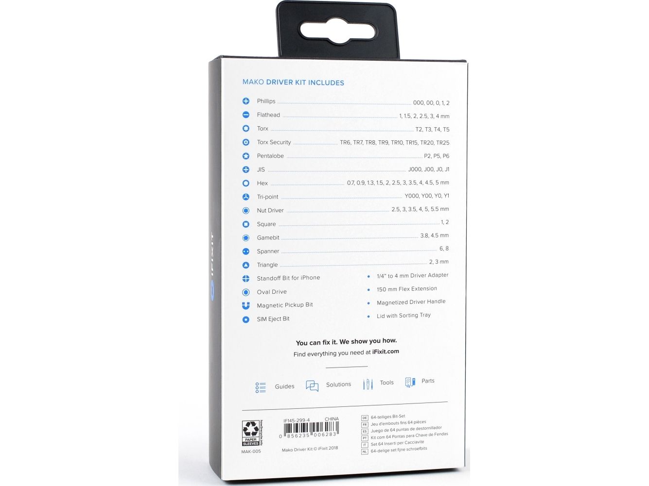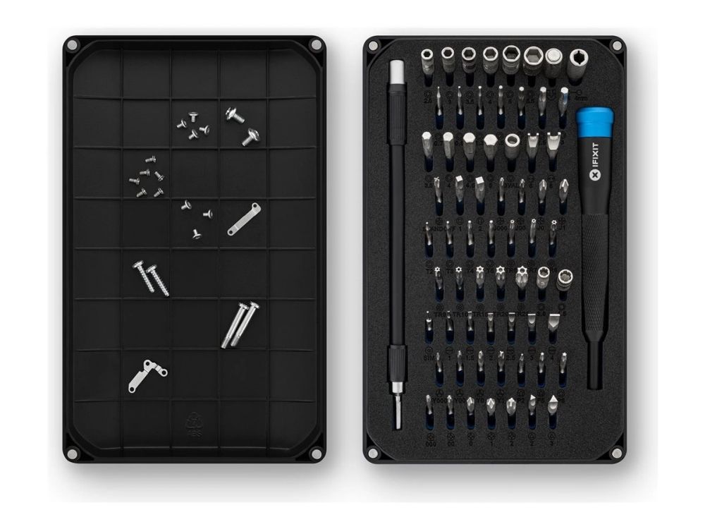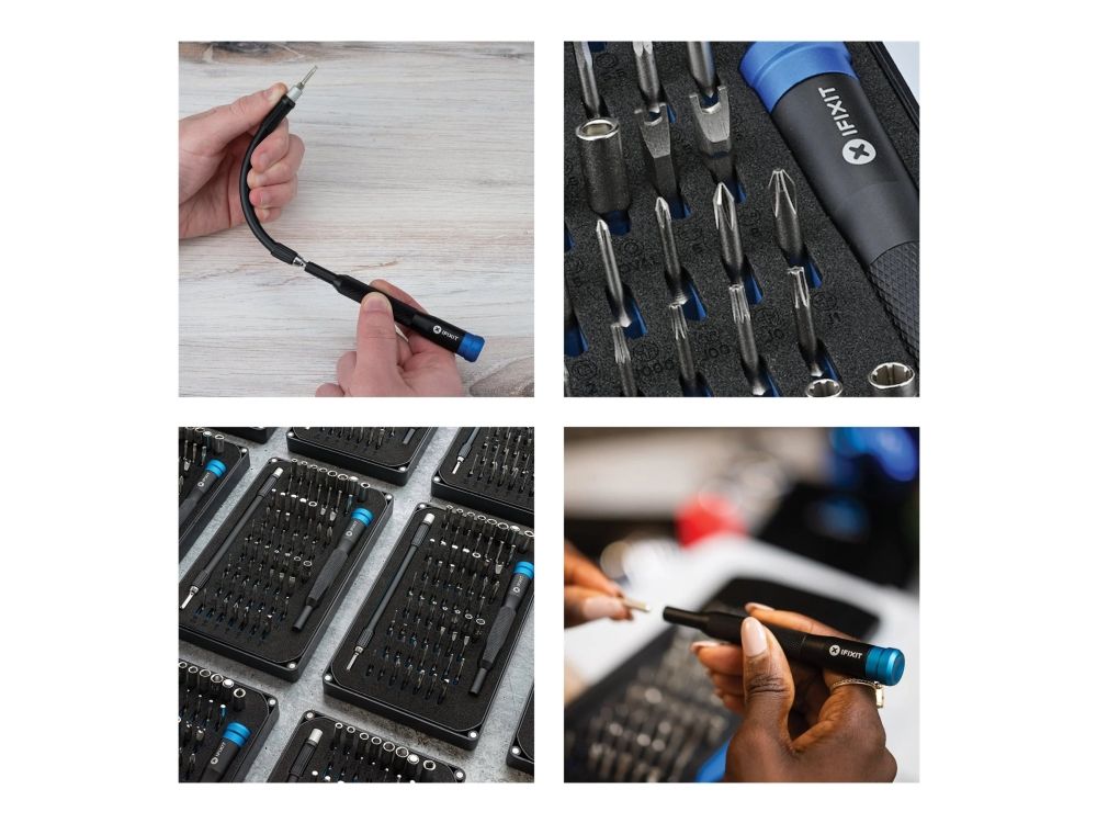 - 64 purpose-driven screwdriver bits selected based on the data from thousands of repair guides.