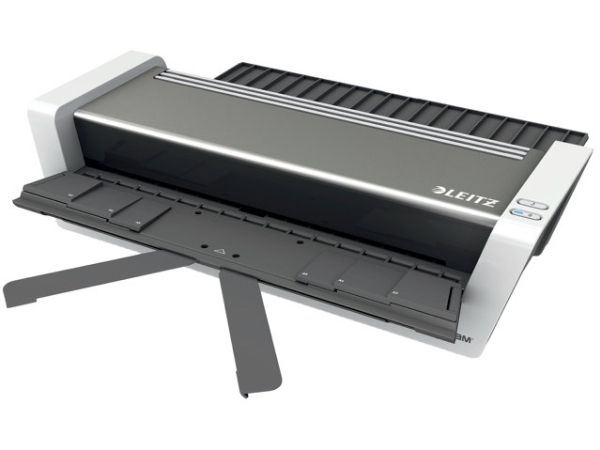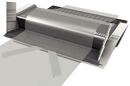 - Bekvem indsætning af lamineringslommen med indføringssystem og unikke patenterede fold ud klapper sikrer en helt jævn og glat laminering af høj kvalitet