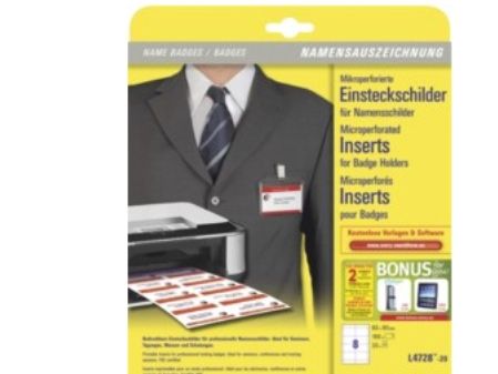 With Avery microperforated name badges, you can create your own badges quickly and easily using your PC and printer. Ideal for seminars, conferences, trainings sessions or visitor management. The ultrafine perforation lines make removing cards fast and easy. Just bend back forth along the perforated lines to separate the badges.