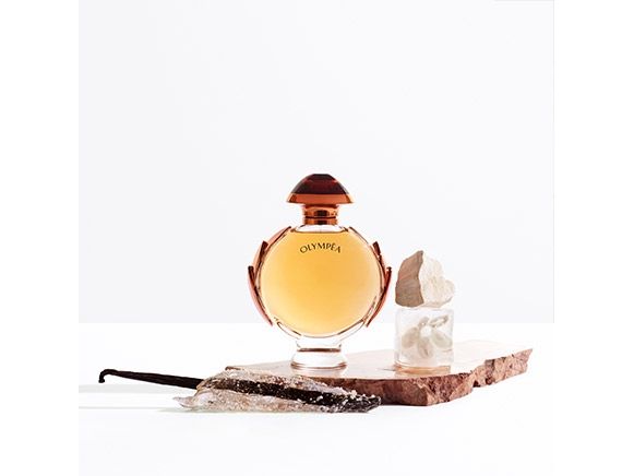 OLYMPEA intense. The most irresistible fragrance for her by Paco Rabanne. Beauty, wit, glory. But why stop there? Olympéa is back at her best, half-myth, half-muse, at the pinnacle of her power, highly desireable. With her fragrance - she announces her success. A sensual salty-vanilla fused with deep amber. Carnal and irresistible.
