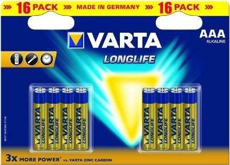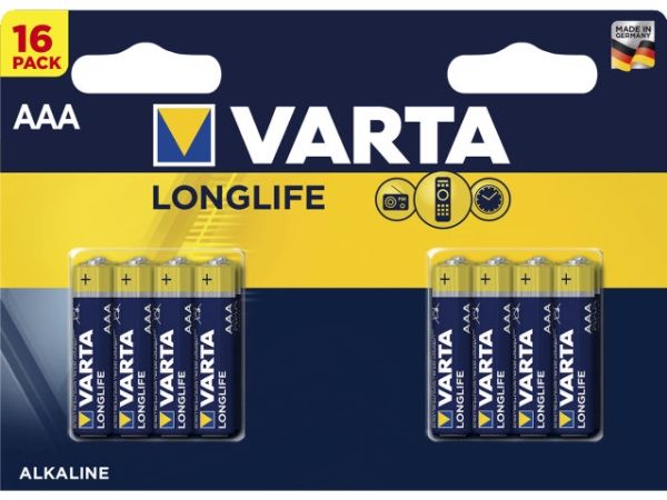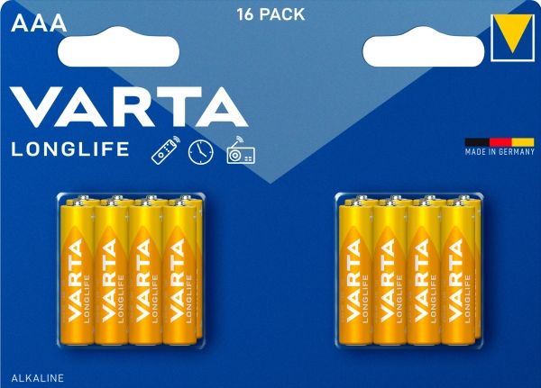 Varta BV-LL 16 AAA, Engangsbatteri, AAA, Alkalinsk, 16 stykker, Blå, Gult, 122 mm