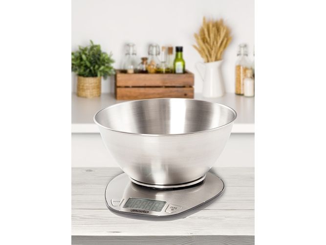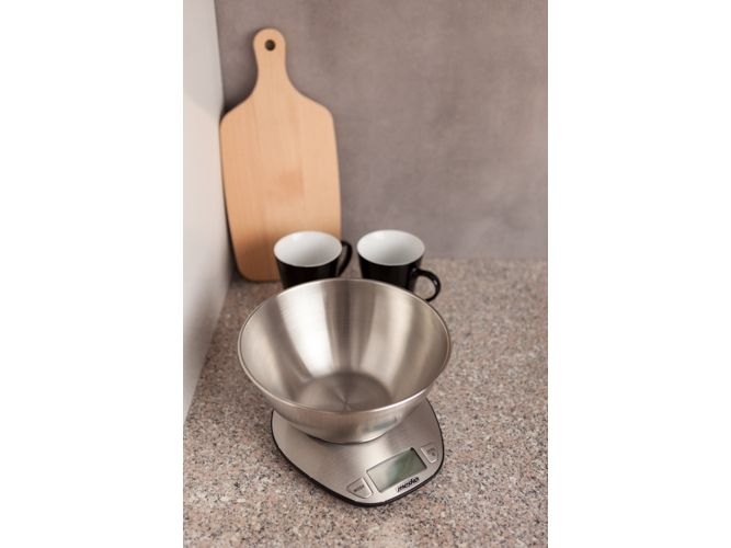 Elegant kitchen scale with a bowl MS 3152 is an essential tool for every kitchen! This is a really useful product when we have to prepare dishes, soups and cakes that require specific proportions of products. The maximum capacity of the device is 5 kg. The precision of weighing ensures the correctness of measurement up to 1g. The stainless steel housing and a bowl ensure not only stylish looks but also long-term using along with effortless cleaning of the product. A big and legible LCD display makes reading measurement easier. Also, the low battery indicator allows you to replace the battery at a suitable moment. In addition, the scale has a tare function and calculates the amount of water and milk. It is equipped with the manual or automatic zeroing and switching off.