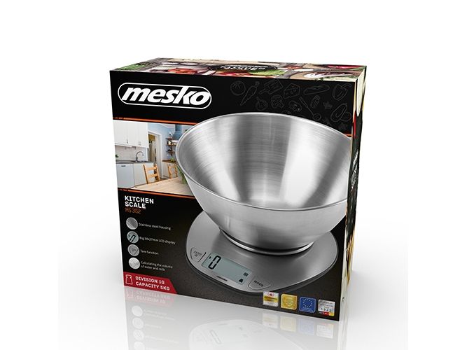Mesko Home MS 3152, Elektronisk kjøkkenvekt, 5 kg, 1 g, Rustfritt stål, Rustfritt stål, Benkeplate