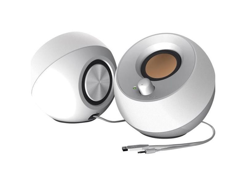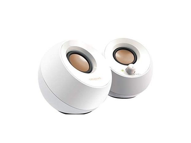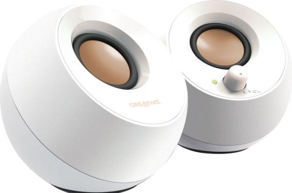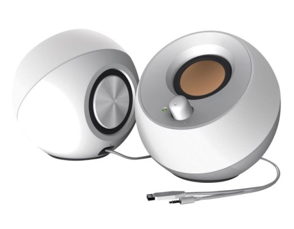 Den kuleformede Creative Pebble er inspirert av de japanske Zen-steinhagene og er et moderne og elegant 2.0 høyttalersystem som ser perfekt ut i alle hjem og kontorer. Den har et 45° forhøyet lydtrinn som gir forbedret lydprojeksjon og drives av en enkelt USB-kabel og gir problemfri musikkunderholdning.
