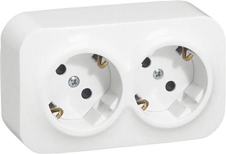 LEGRAND Forix indendørs dobbelt stikkontakt SCHUKO standard med pille sikring, 16A 2 x 2P+jord . Komplet i udvendigt underlag, Hvid.