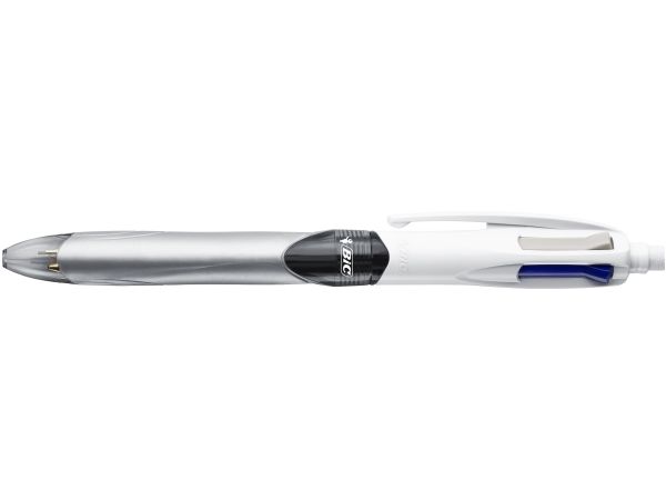 BIC 4 Colours 3+1HB kuglepennen. Den indeholder den klassiske blå, sorte og røde kuglepen, men den grønne pen er blevet udskiftet med en multifunktionel HB blyant. Udover sin verdensberømmelse for at kunne skrive en op til 2km lang linje, er 1,0 mm k