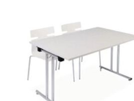 Fumac 1500 klapbord. Sammenklappeligt bord med mulighed for hjul i den ene side. 22 mm tyk bordplade i decor laminat med lige ABS-kantliste. Krom stel. Fast højde 74 cm inkl. bordplade, 10,5 cm sammenklappet. Dybde 80 cm.