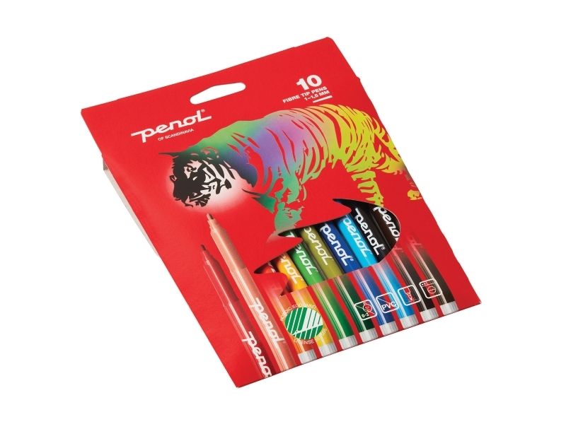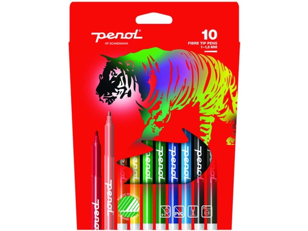 Fibertusch Penol fin spids med 10 stk. ass. farver
