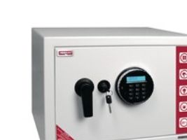 Elektronisk sikkerhedsskab med kombinationslås. Med alarm som går i gang efter 3 indtastninger af forkert kode.
