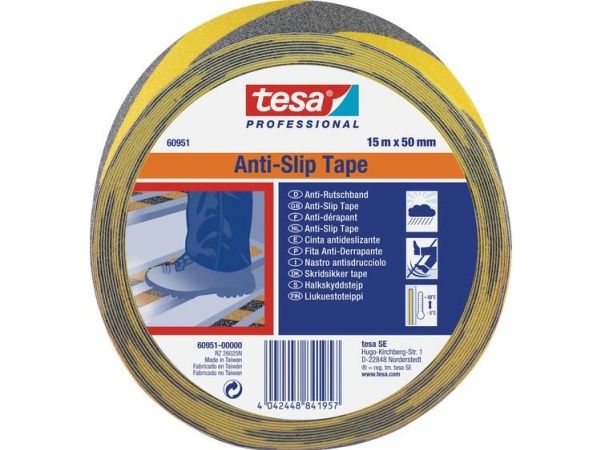 Skridsikker tape Tesa 60950, 50 mm x 15 m, sort/gul