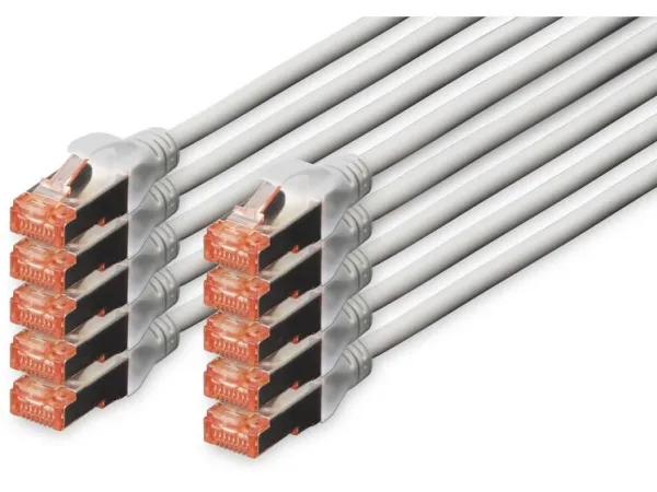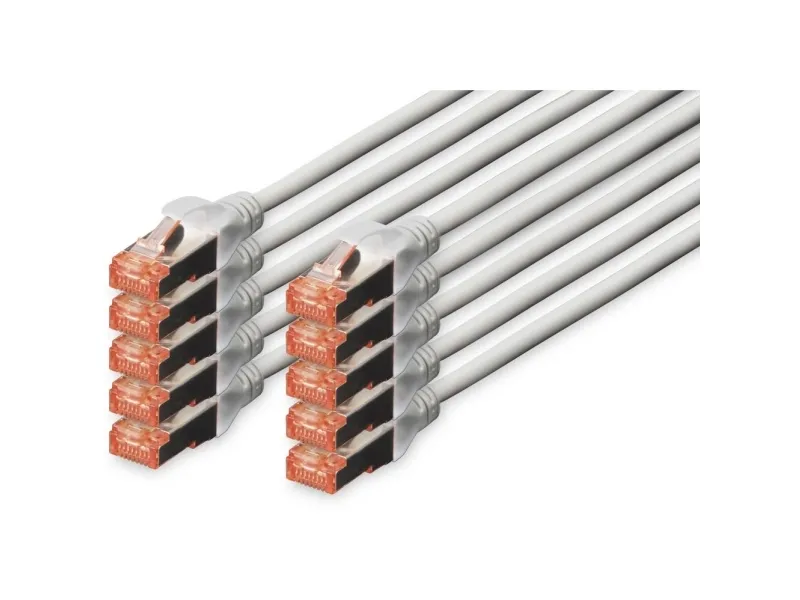 DIGITUS Professional - Koblingskabel - RJ-45 (hann) til RJ-45 (hann) - 2 m - SFTP, PiMF - CAT 6 - IEEE 802.3 - med støvel, halogenfri, uten hindringer, flertrådet - grå (en pakke 10)