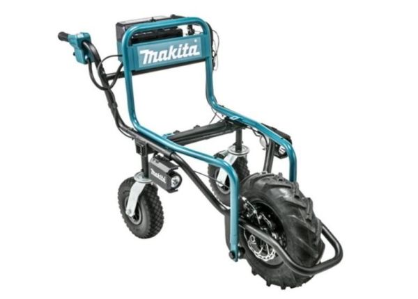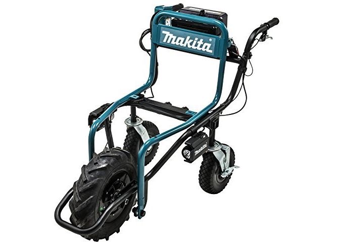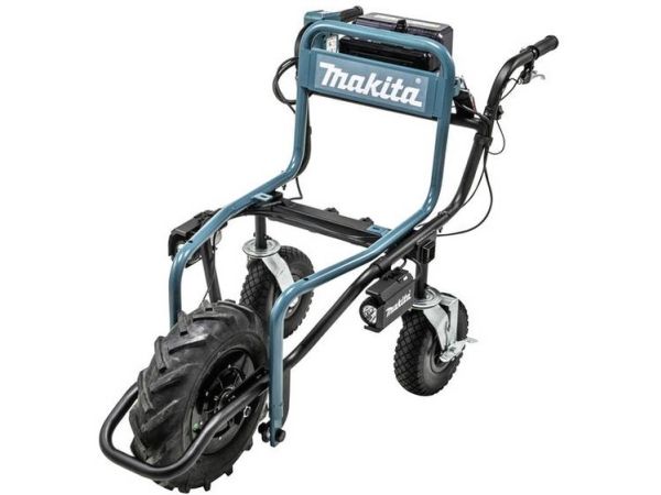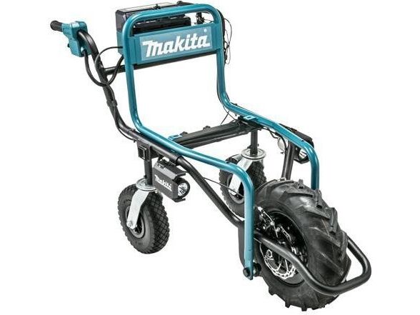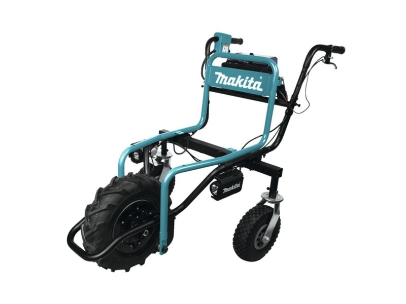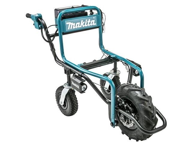 The battery-assisted 18V LXT wheelbarrow is a great tool for worksites, farms and holiday homes. Two speeds, reverse and brake. Metal bucket and flat bed pipe frame as accessories.