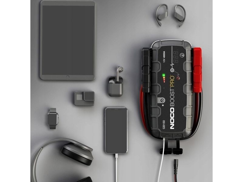 GB150 er en bærbar lithium-ion-batteri startpakke, der leverer 3000A og som kan starte et dødt batteri på få sekunder! Den er udstyret med en patenteret sikkerhedsteknologi, der gør boosteren gnistfri og sikrer mod omvendtpolaritet. GB150 er en multifunktionel Powerbank, der også kan oplade dine USB-enheder eller drive dine 12V enheder. Den lader hurtigt dine Apple enheder, såsom iPhone, iPad eller iWatch, såvel som GoPro kamerarer eller dine bluetooth højtalere samt hovedtelefoner.