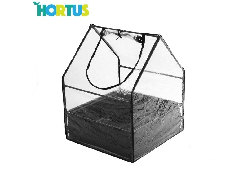 HORTUS Mini plastik drivhus med bund Ramme i lakeret metal og samlestykker i plastik. Overtræk fremstillet i kraftig plast.