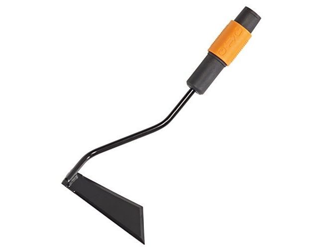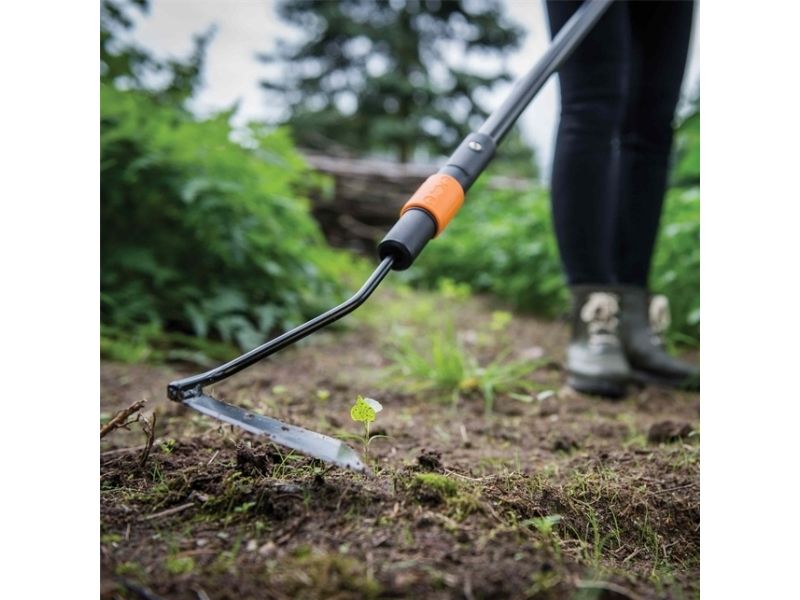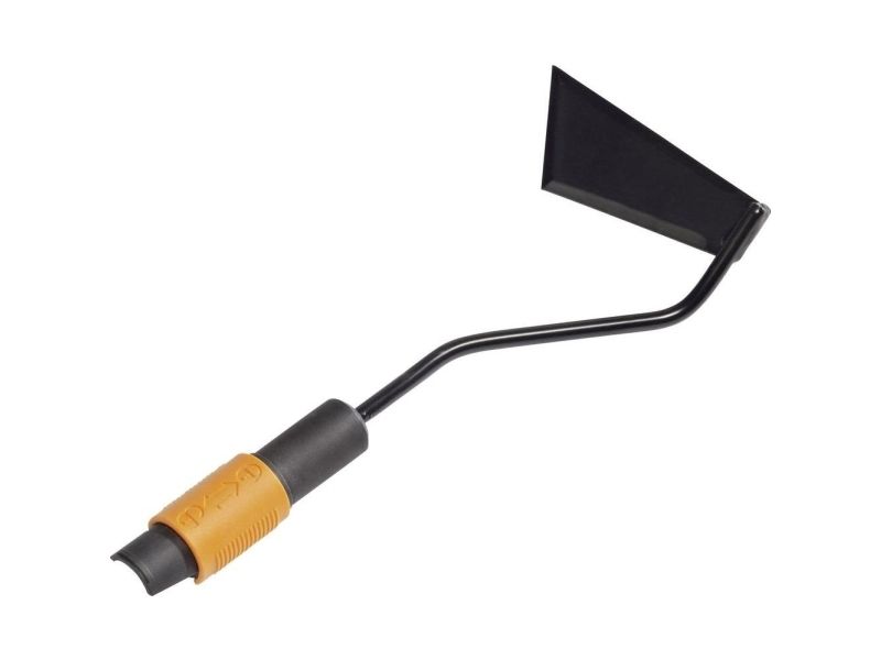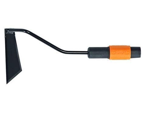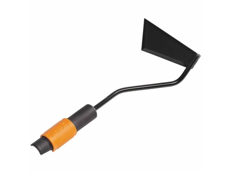 Fiskars QuikFit 3 Function Hoe is a highly versatile cultivator tool for working around stems and in narrow spaces. This is more than just a simple hoe - its angular blade is sharpened on 3 sides to assist cultivating at different angles enabling a much more varied hoeing action. The sharpened edges cut through weeds with little effort while the blade also breaks and levels soil neatly with its blade of hardened boron steel. This multi-head tool from QuikFit can be used with all standard and small shafts