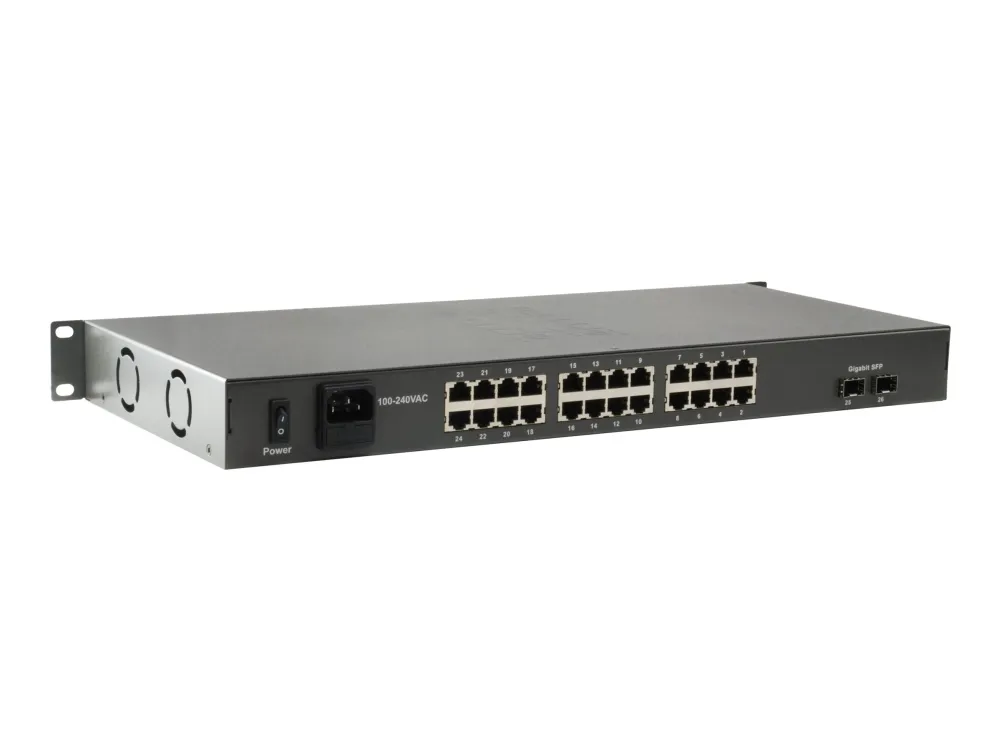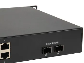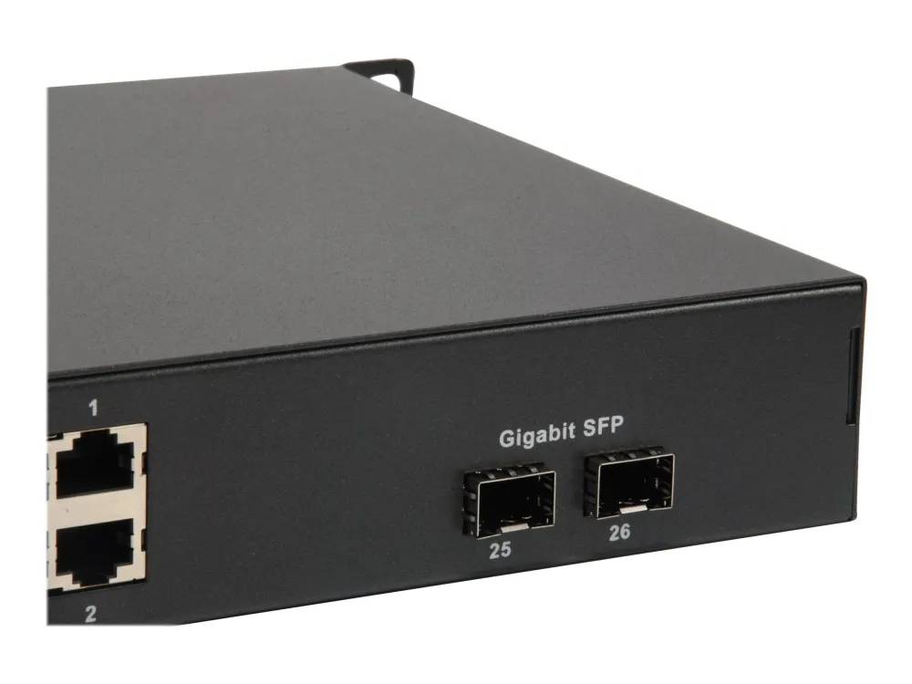 24 x 100Base-TX RJ-45 PoE+ - 30 W 2 x 1000Base-X SFP