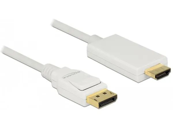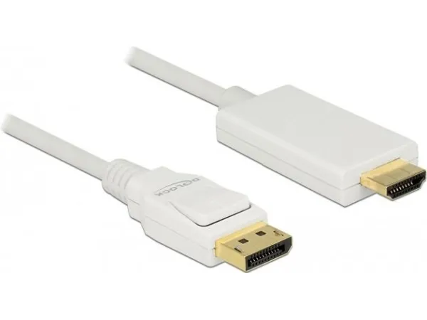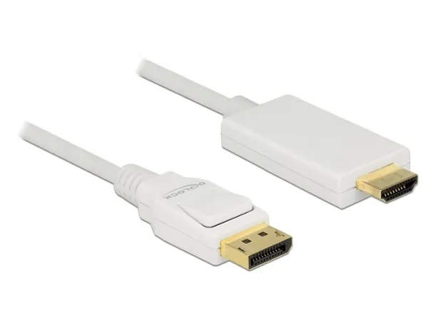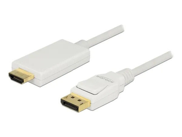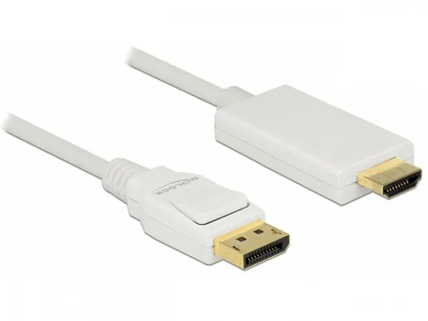 Delock - Adapterkabel - DisplayPort hann til HDMI hann - 3 m - trippel beskyttelse - hvit - passiv, 4K-støtte