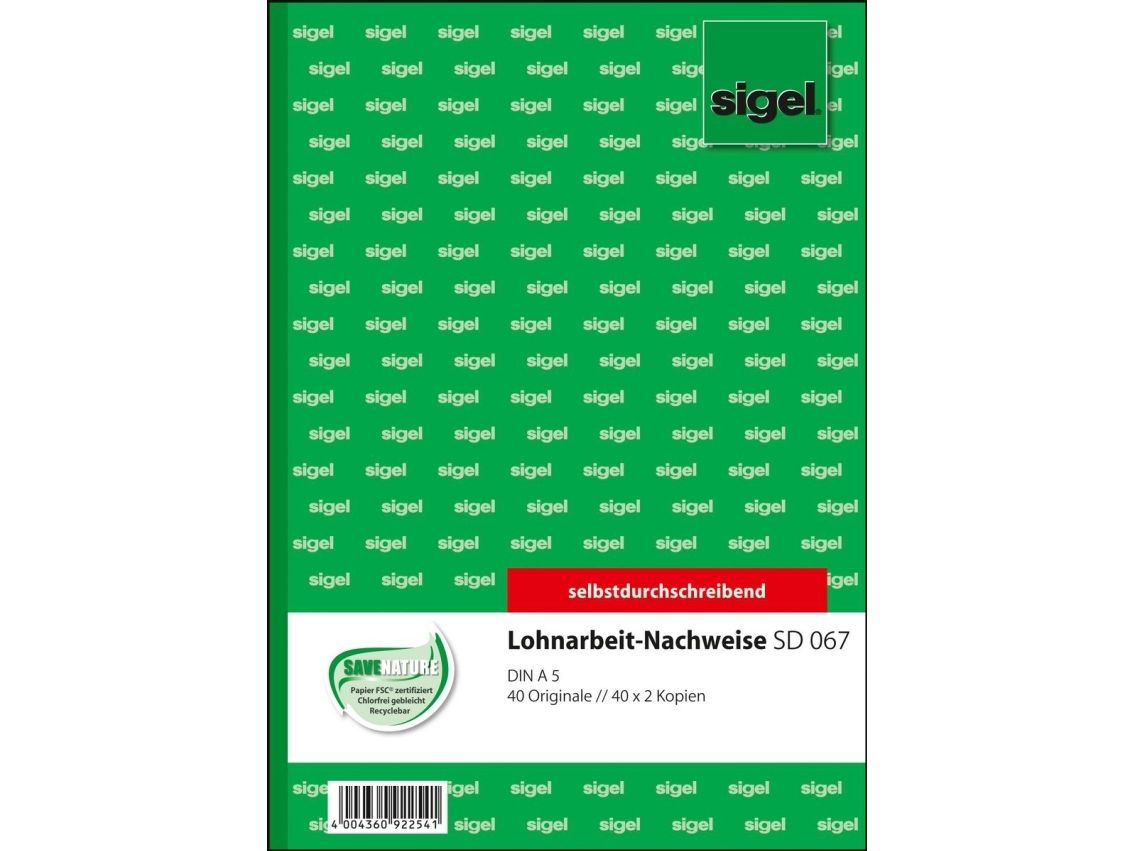 sigel skjema-/formularbok »Lohnarbeits-Nachweis« A5 SD – for markedet: D – 1 stk (SD067)