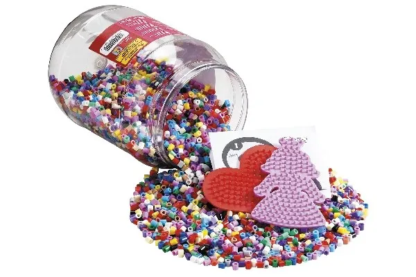Ca. 7.000 perler, 2 små stiftplader: Hjerte nr. 236-05 og prinsesse nr. 328-48. Motivark, vejledning og strygepapir.