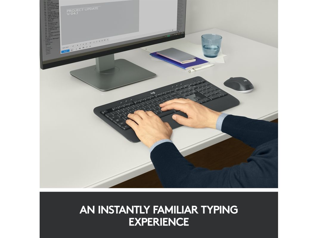 MK540 Advanced er et lett gjenkjennelig tastatursett som er utviklet for presisjon, komfort og pålitelighet. Og den avrundede musen for høyre- og venstrehendte er utformet slik at den ligger behagelig i begge hender.
