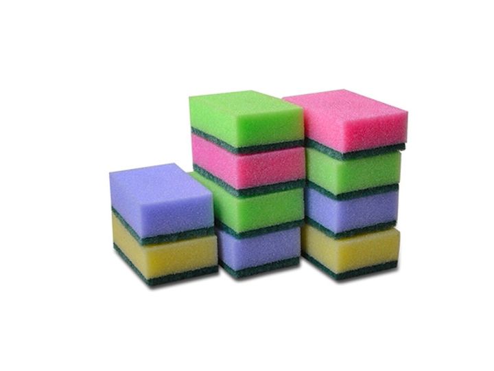 Svamp multi Mini 9x6 cm Assorterede farver med Grøn skuresål,10 stk/pk