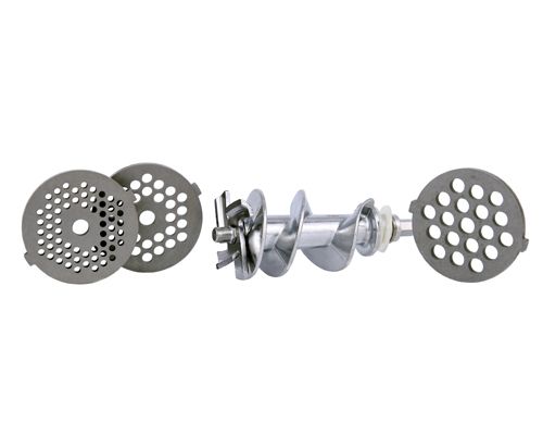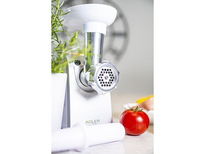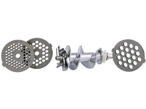 A solid device for those who wish to prepare home made sausages and ground meat. It is equipped with three cutting sieves (exchangeable): one to mince meat, the second for poppy seeds, the third one has the middle-sized holes. In the set a plunger and sausage filler are also included. The whole device is made of durable materials that are easy to be disassembled and cleaned. Apart from the forward mode it has a reverse function. Normally the device is rated at maximum 350W with the leverage power of 1500W.