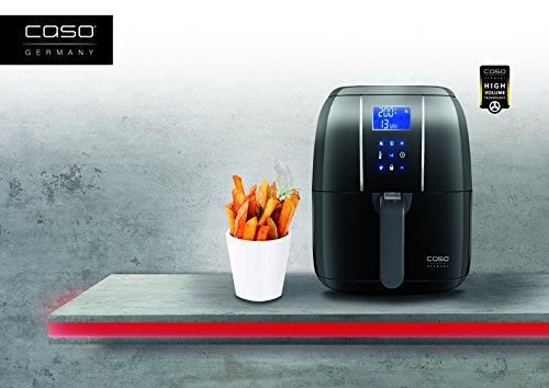 Med Caso Air Fryer AF200 får du en varmluftsmaskin som bl.a. kan tilberede deilige pommes frites samt annen lignende mat som ellers måtte/kunne tilberedes i en oljefrityrkoker.