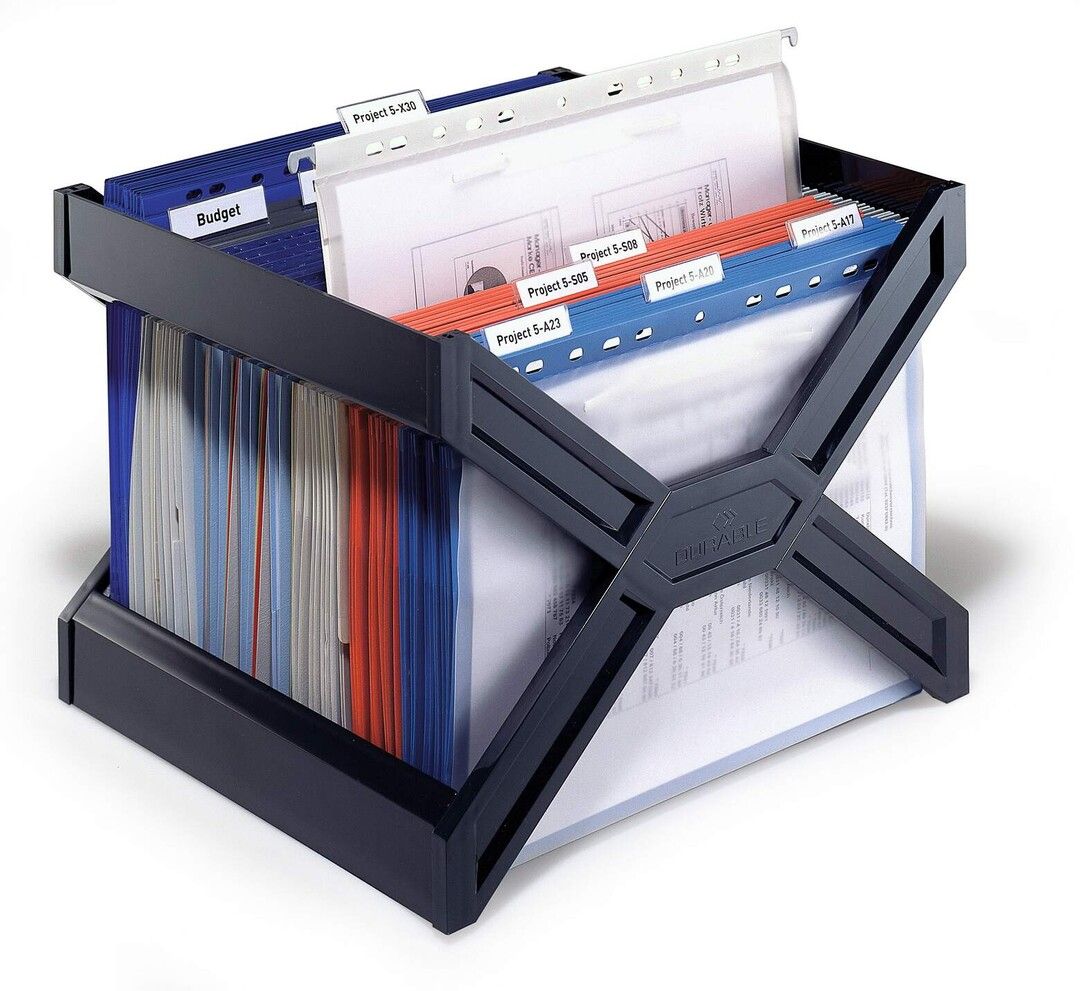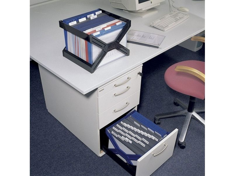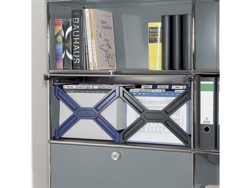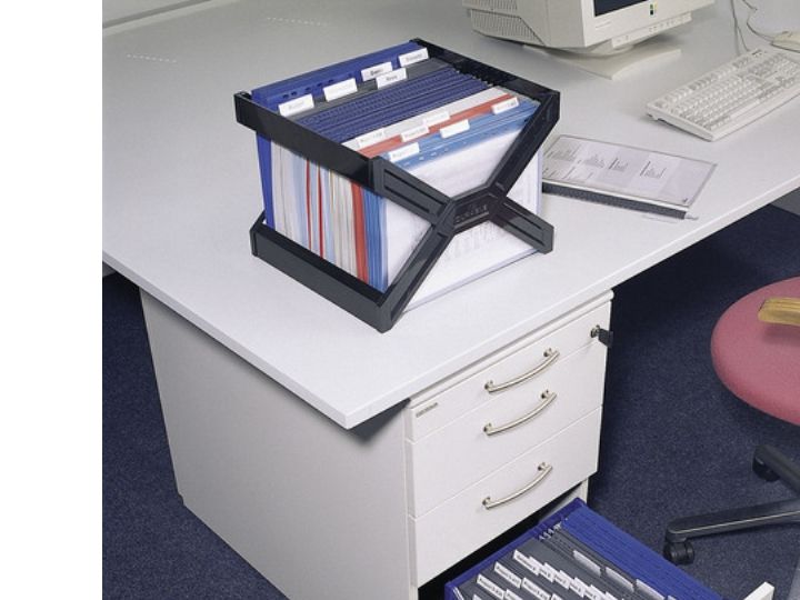 | • Hængemappestativ til ca. 30 hængemapper (leveres uden hængemapper) • Fleksibel anvendelse i skrivebordsskuffer og skabe • Kan nemt foldes sammen og er nem at opbevare • Kan stables • Let montering med stikforbindelser • Egnet til A4-format • Sporbredde: 330 mm |